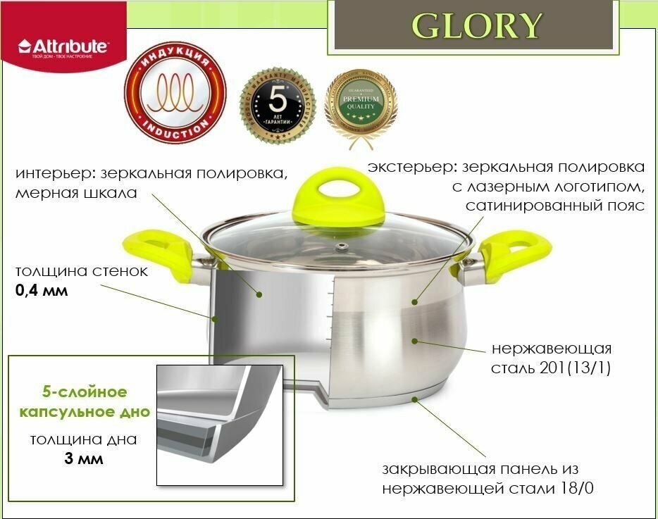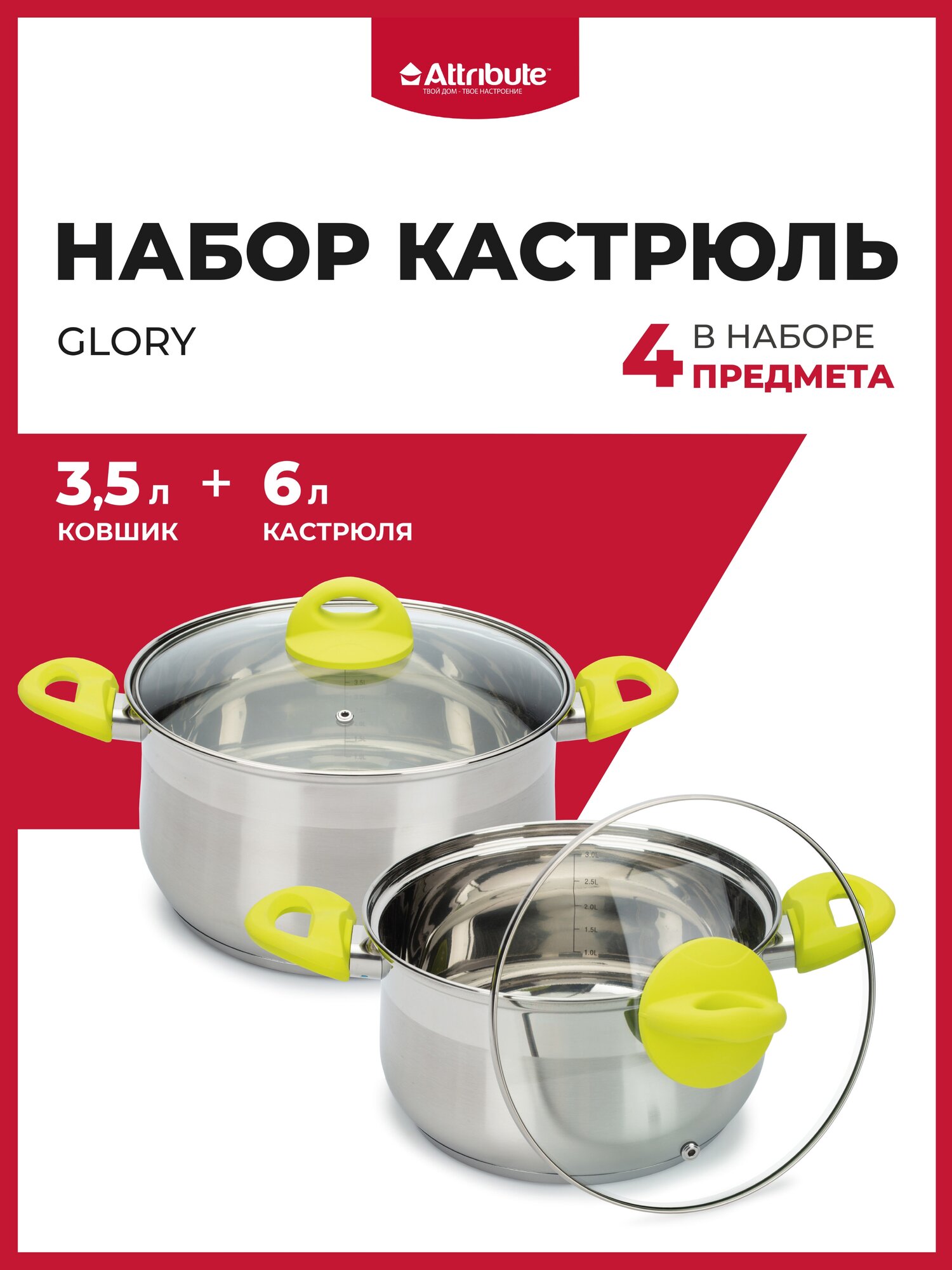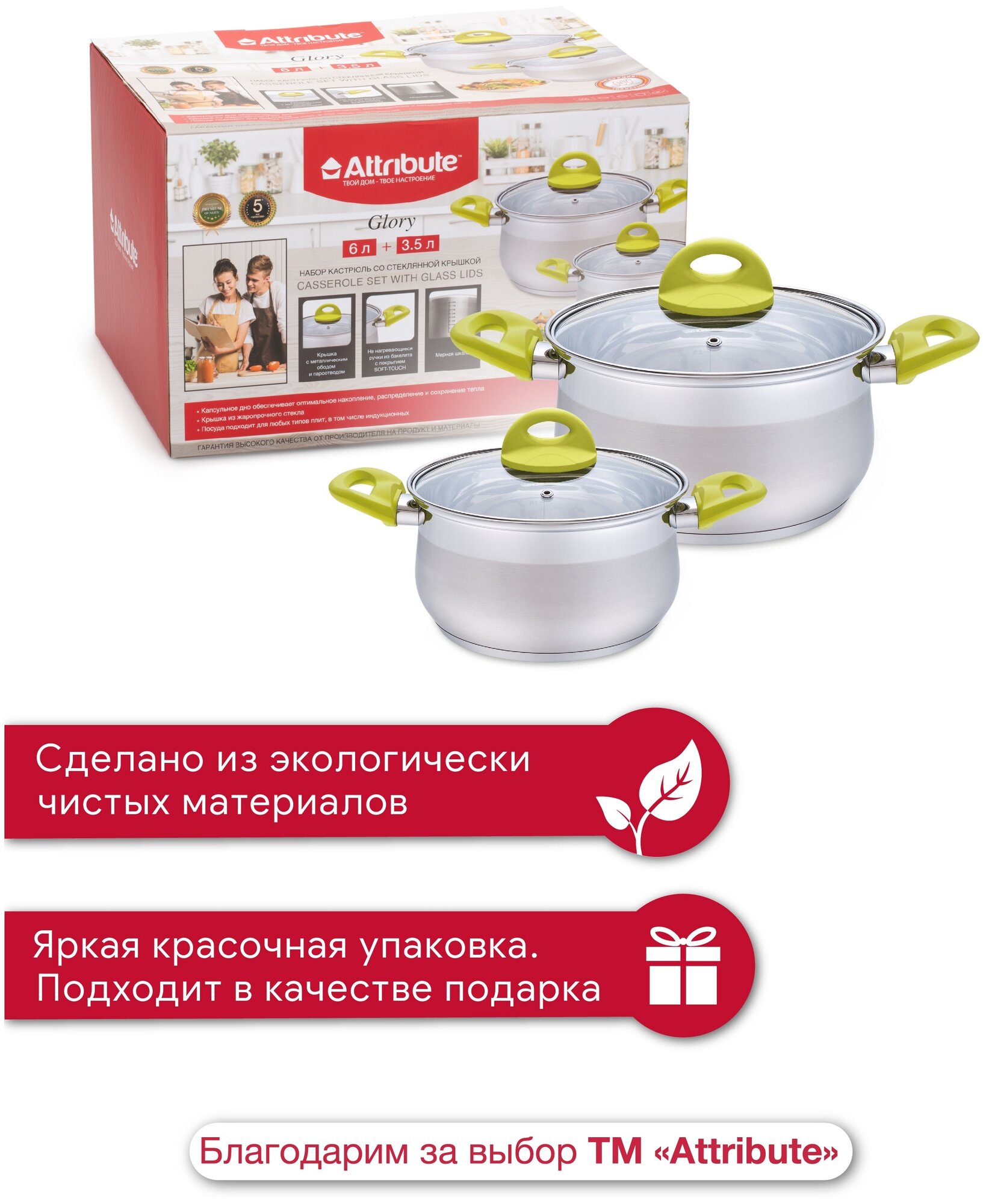 Набор кастрюль с крышками Attribute Steel Glory 6л + 3.5л Realwin Metal Manufacture