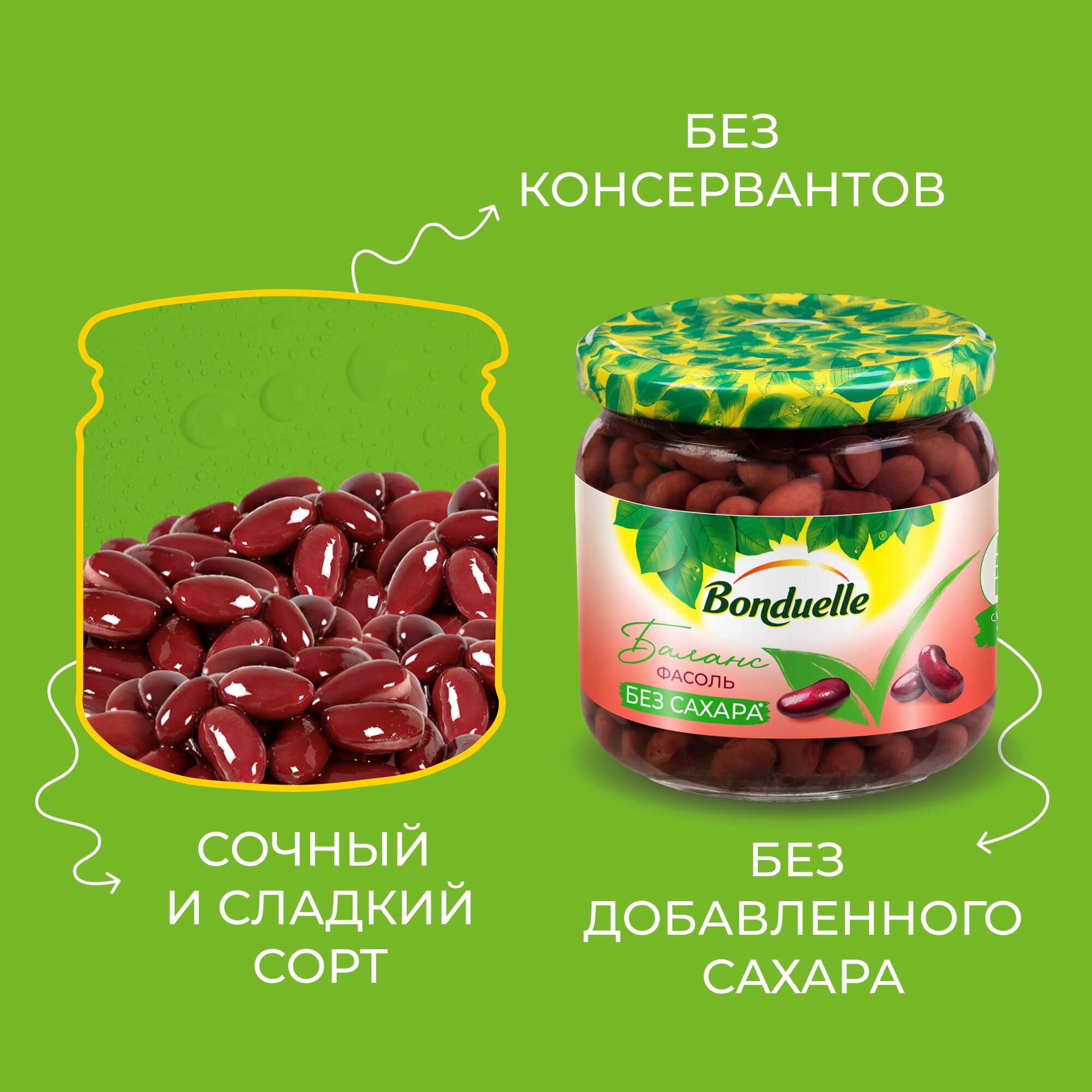 Красная фасоль, собранная на пике зрелости, вкусная и сочная сама по себе, даже без добавленного сахара. Создавайте легкие и сбалансированные блюда с линейкой продуктов без сахара Bonduelle. Напоминаем, что фасоль — один из лучших источников легкоусвояемого растительного белка.