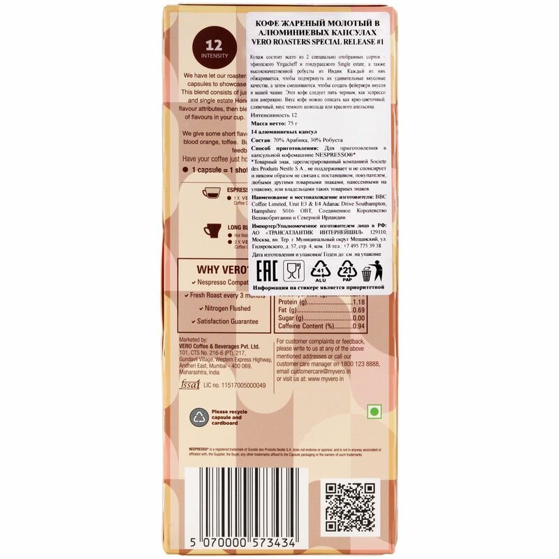 Кофе в капсулах VERO Roasters special release 14шт BBC Coffee Limited