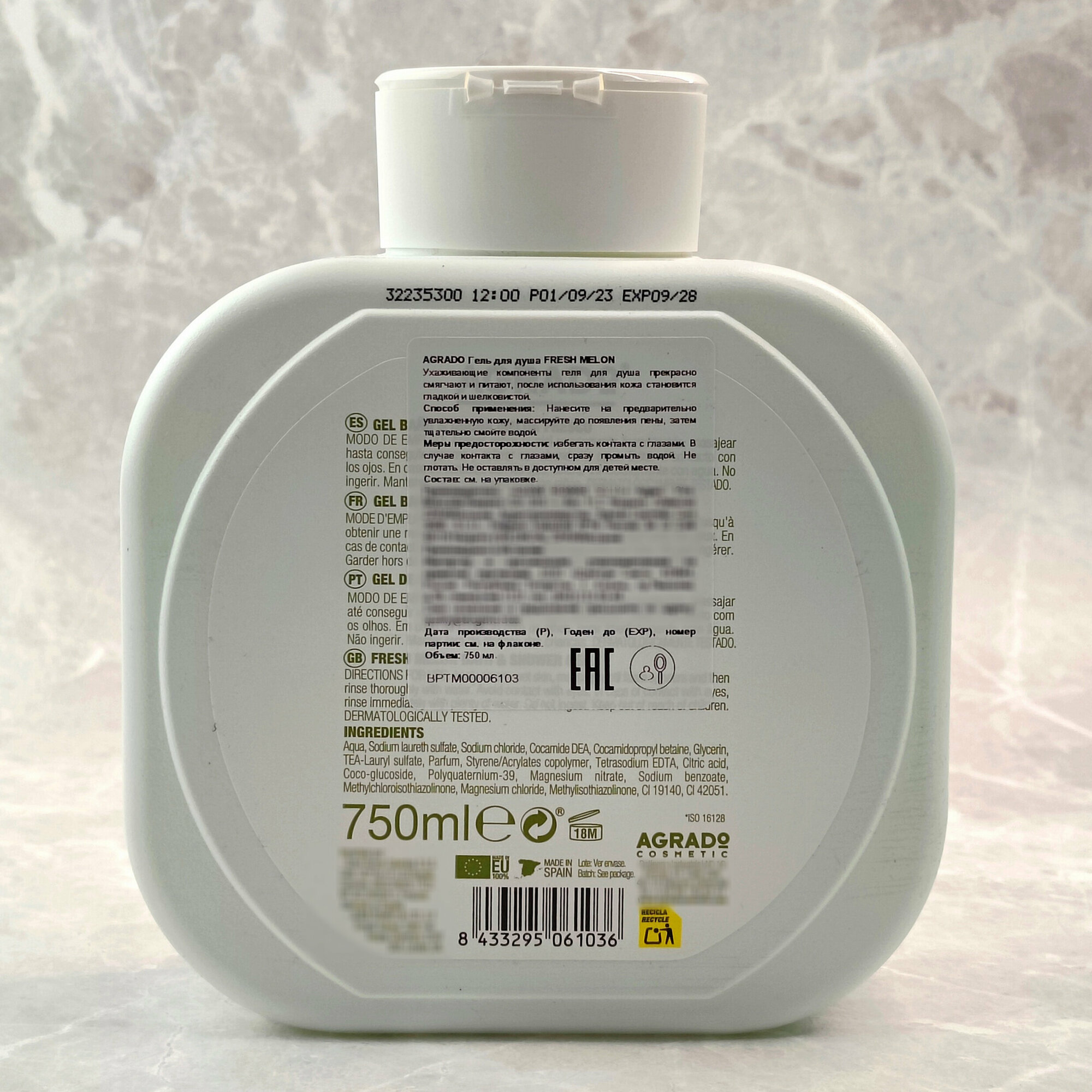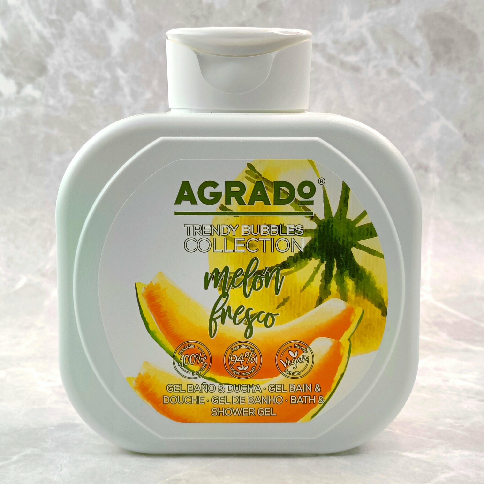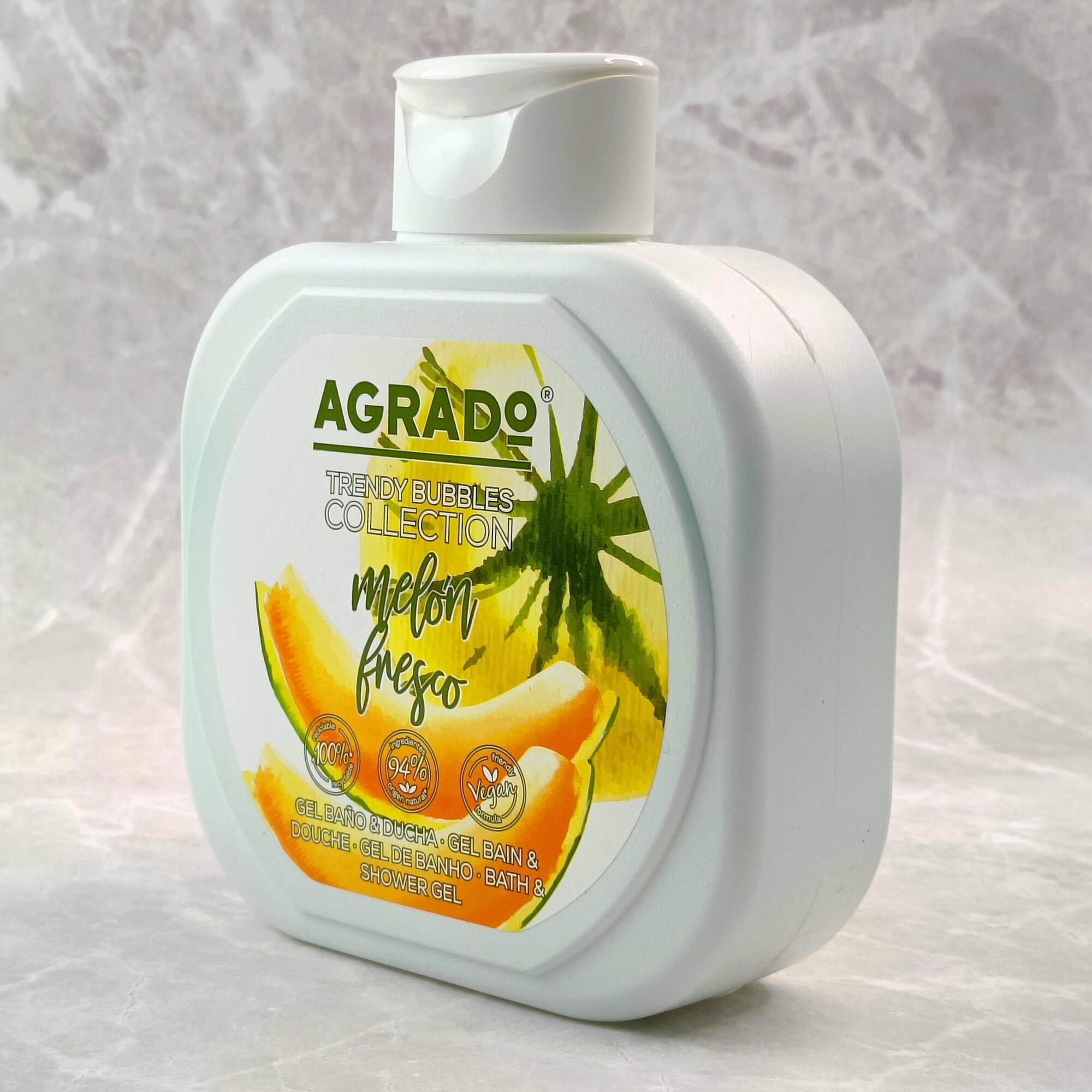 Гель для ванны и душа Сочная дыня BATH & SHOWER GEL FRESH MELON AGRADO- гель от команды профессионалов испанского бренда. Его упоительный экзотически-фруктовый аромат создаст потрясающую атмосферу гармонии, умиротворения и безмятежности. Бархатистая пена с миллионами нежных пузырьков деликатно очищает от различных загрязнений. Бережная ухаживающая формула с нейтральным уровнем pH не провоцирует пересушивания эпидермиса. Великолепно тонизирует кожу, поддерживает ее природную упругость,делает кожный покров шелковистым и более гладким.