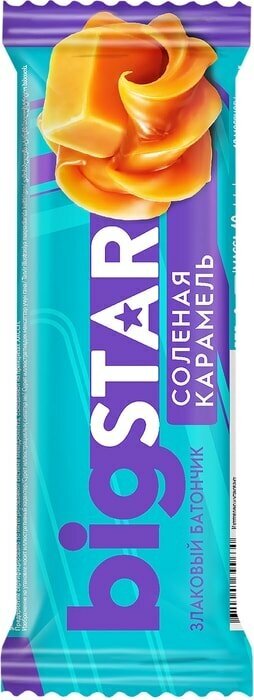 Злаковые батончики Big Star состоят из питательной смеси злаков с кусочками соленой карамели и с добавлением арахиса, обладают ярким вкусом, который идеально сочетает все компоненты. Уникальный вкус на рынке злаковых батончиков. Увеличенный формат батончика (40г) помогает утолить голод, наполнить организм энергией злаков и получить удовольствие от вкуса. Удобно взять с собой, идеально подойдет для перекуса в дороге, в офисе, прогулке и путешествиях.