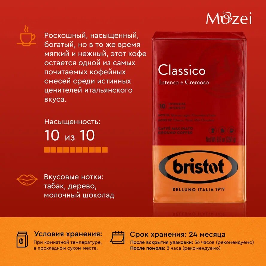 Кофе молотый Bristot Classico жаренный 250г Procaffe