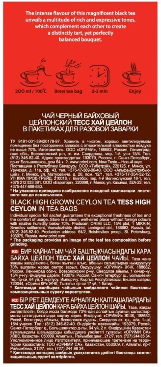 Чай черный Tess High ceylon 25*2.25г ОРИМИ