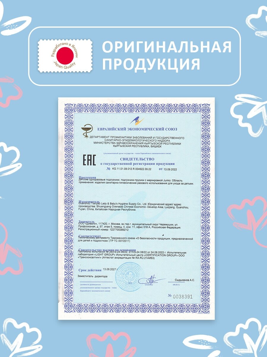 Подгузники-трусики Junko XL 12-17кг 38шт Quanzhou Tianjiao Lady & Babys Hygiene Supply (размер: 5-XL/5)
