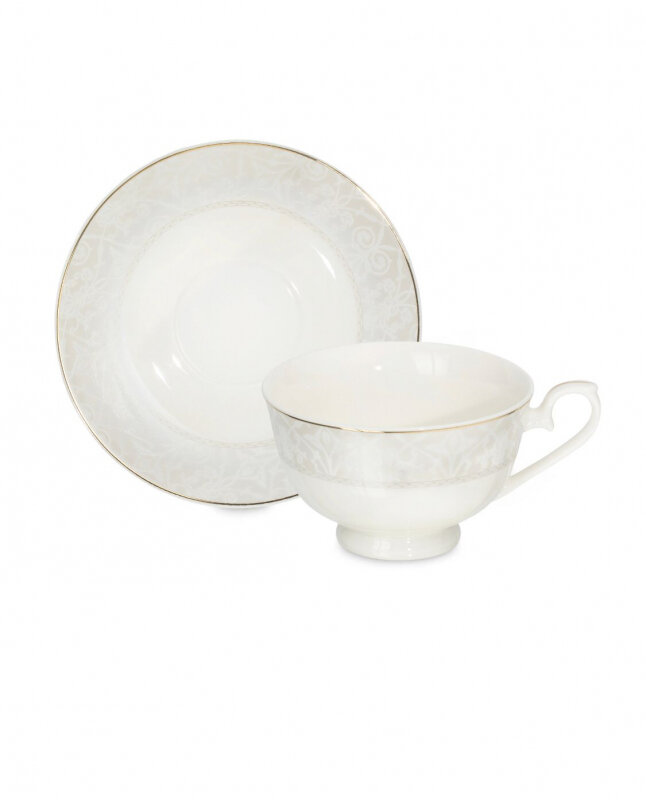 Чайная пара Fioretta Allure - это продукция высокого качества, изготовленная из прочных, надежных, долговечных и безопасных для здоровья материалов. Посуда порадует хозяев и их гостей своим элегантным исполнением в классическом стиле. Перламутровые элементы на поверхности удачно сочетаются с золотыми линиями, которые выглядят очень утонченно и изысканно. Такие изделия способны гармонично дополнить сервировку повседневного и праздничного стола, а также подойдут в качестве подарка. Качественный фарфор отличается высокой степенью белизны, а благодаря специальному покрытию посуду можно использовать долгое время и она не утратит своего первоначального внешнего вида, на ней не образуется потемнений, сколов и стираний рисунка.