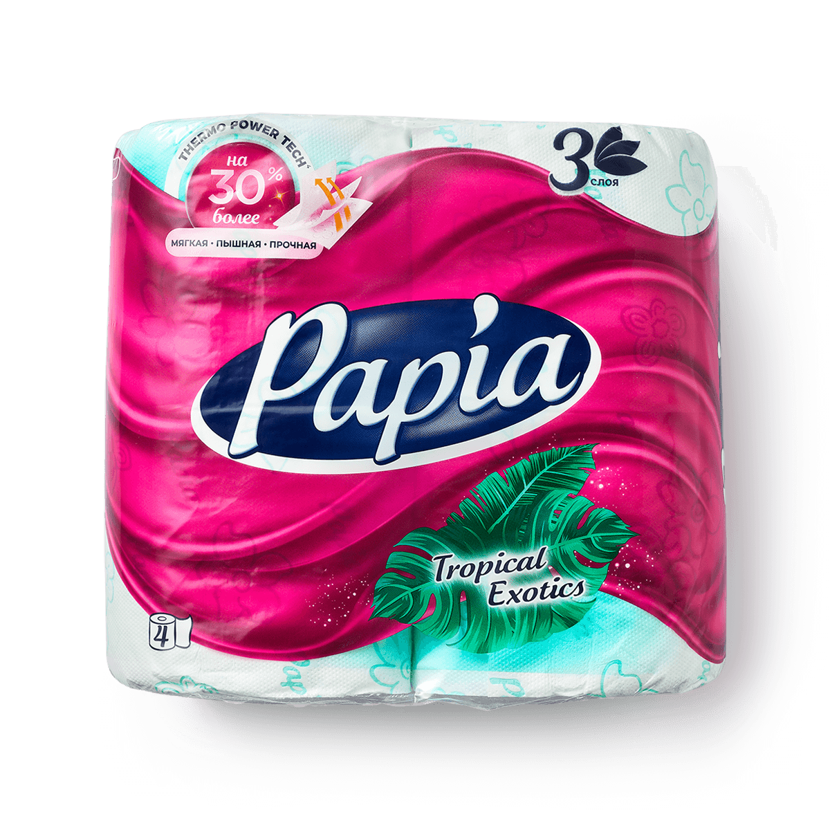 Туалетная бумага Papia Tropical Exotics 3 слоя 4 рулона Хаят маркетинг