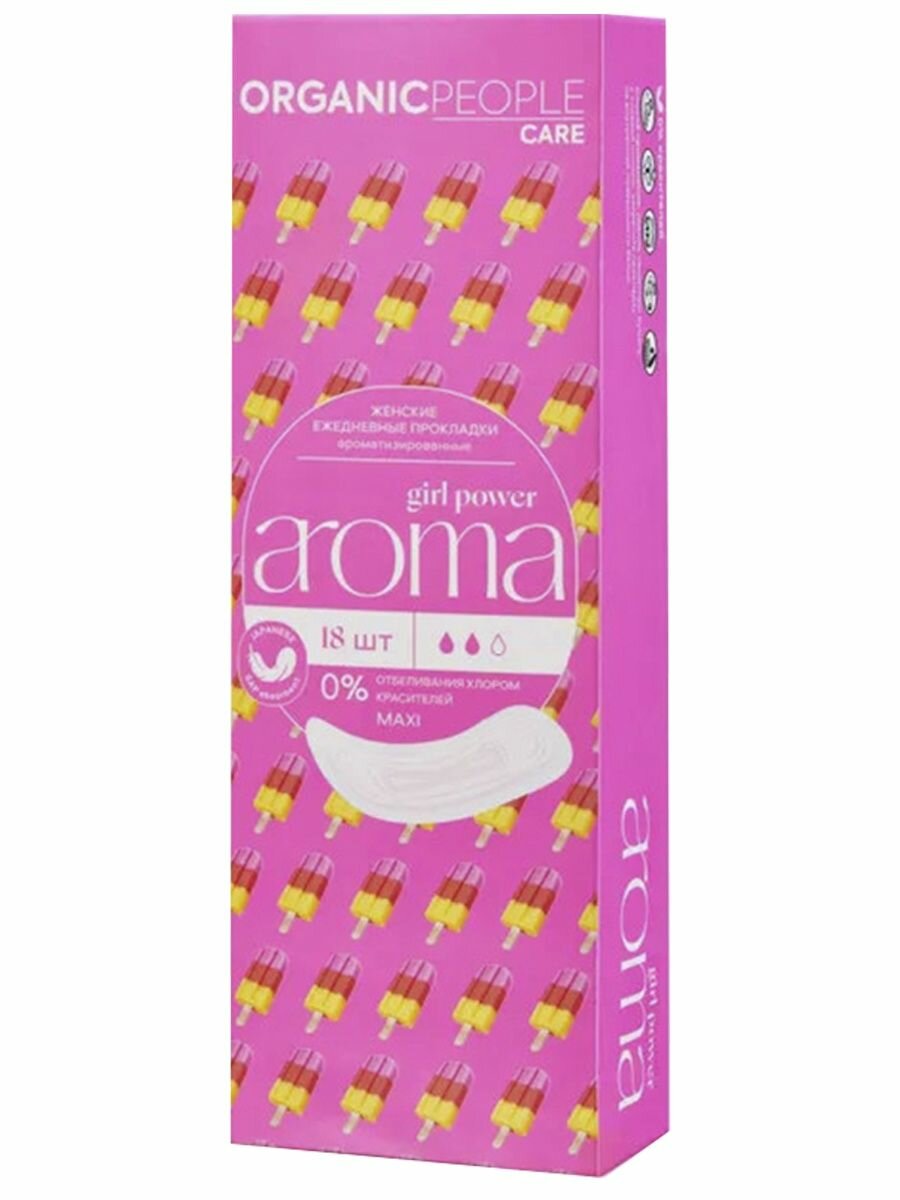 Прокладки Organic People Girl Power ежедневные ароматизированные Aroma Maxi 18шт Планета Органика
