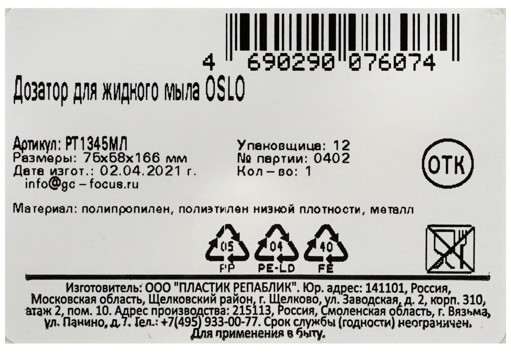 Дозаторы для жидкого мыла Пластик репаблик »