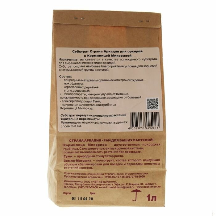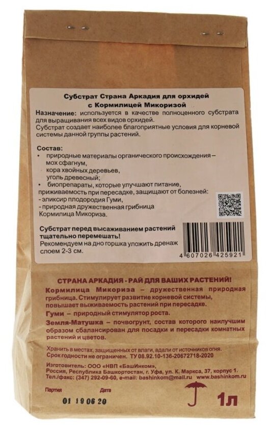 Субстрат БашИнком Страна Аркадия для орхидей с Кормилицей Микоризой 1л