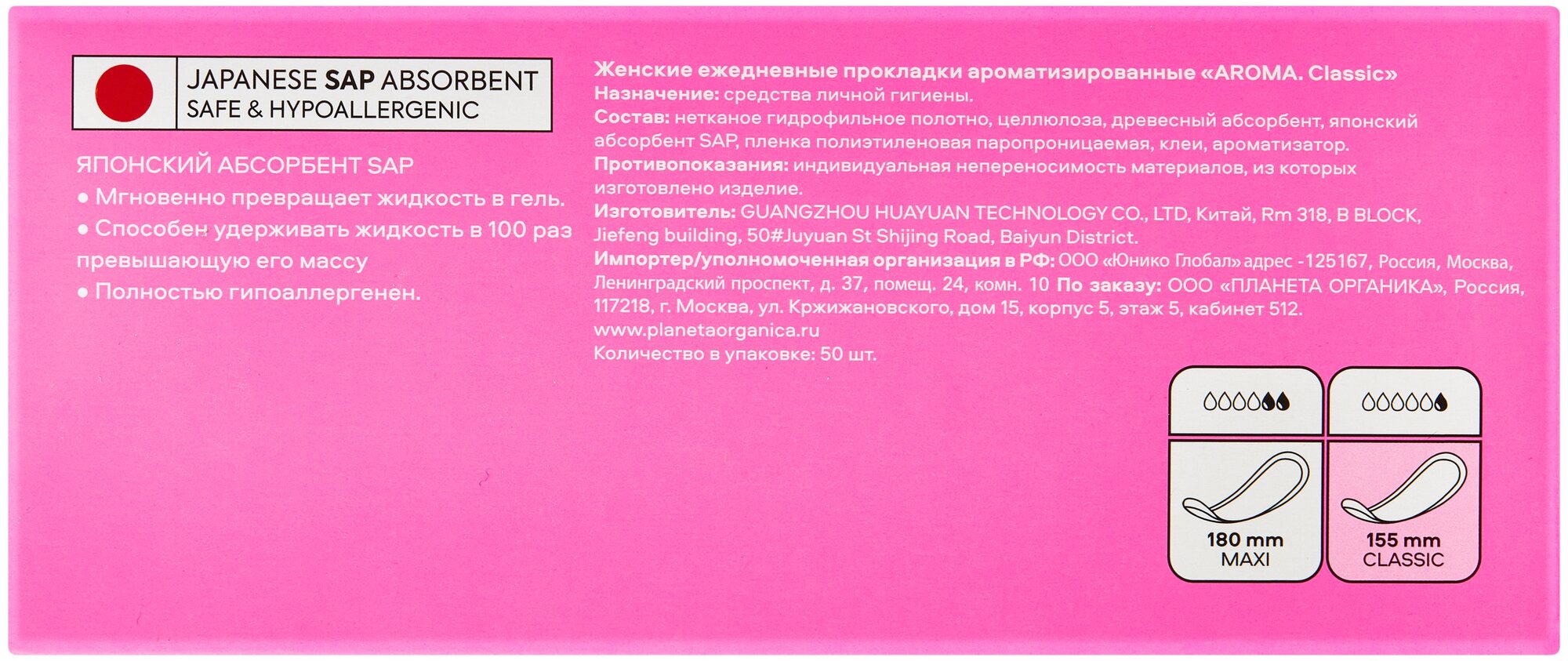 | Полное наименование | Прокладки ежедневные Organic People Care Girl Aroma Classic 20 шт |