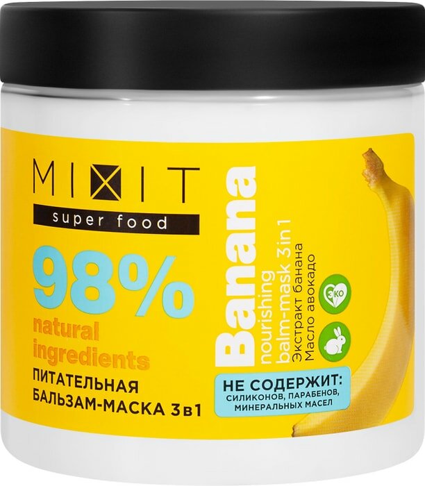 Бальзам-маска MiXiT Super food Питательная 3в1 банан 500мл Миксит