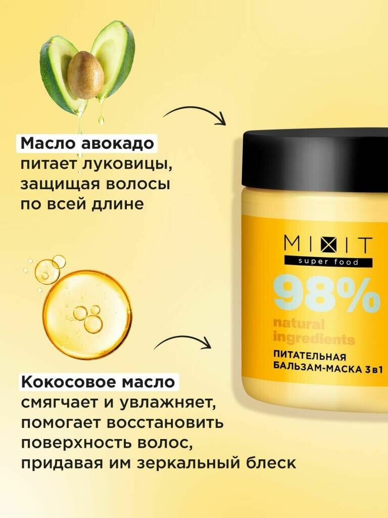 Сервис сравнения цен СкидкаГИД предлагает сравнить цены на товар «Бальзам-маска MiXiT Super food Питательная 3в1 банан 500мл Миксит»