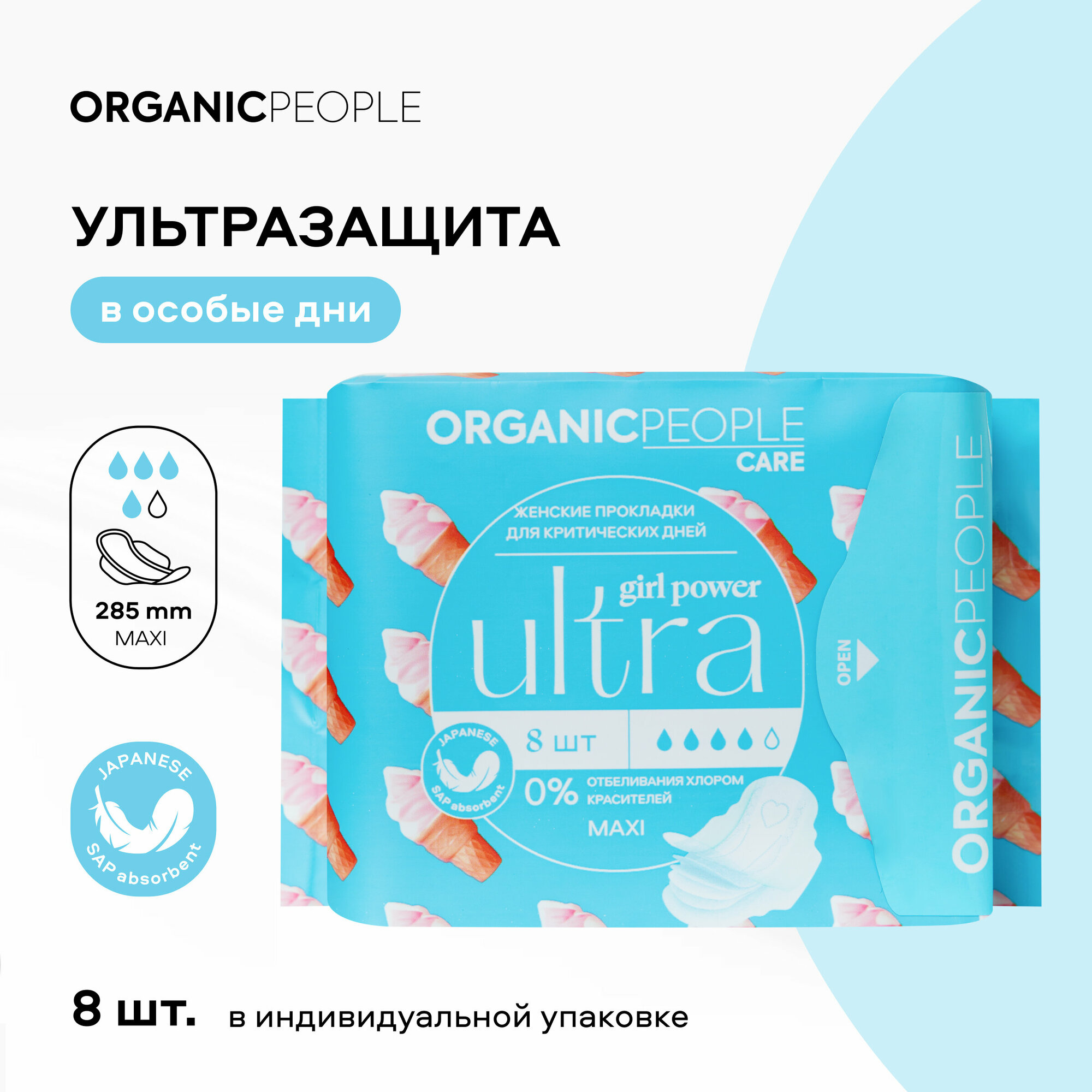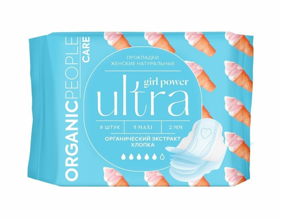 Прокладки Organic People Girl Power для критических дней Ultra Maxi 8шт Планета Органика