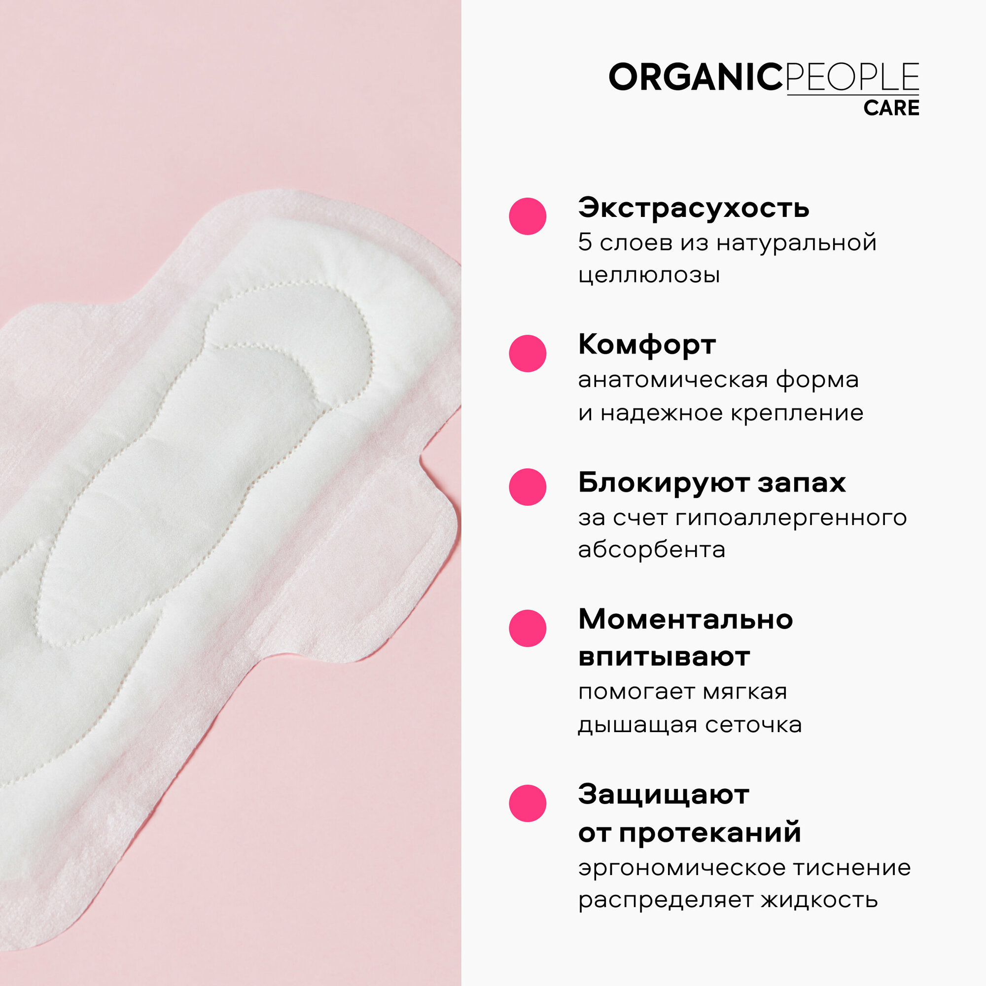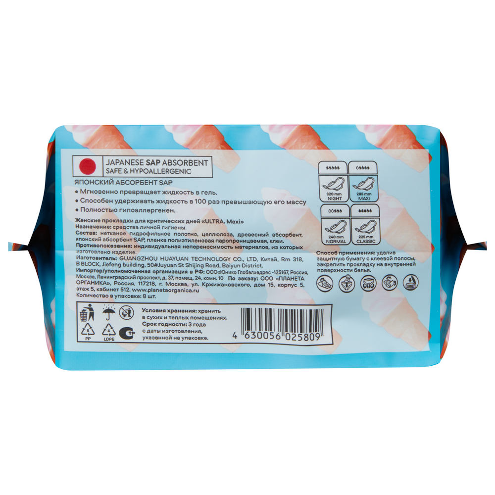 Прокладки для критических дней от Organic People - твоя защита в особые дни. Прокладки анатомической формы с ультра-мягким дыщащим покрытием защищают от раздражения, мгновенно впитывают выделения и эффективно блокируют запахи. Анатомическая форма и надежное крепление созданы для максимальной защиты и комфорта, эргономичное тиснение и мягкая сеточка обеспечивают равномерное распределение жидкости. Не содержат ароматизаторы, красители и отбеливающие вещества. В основе - японский абсорбент SAP – мгновенно превращает жидкость в гель, способен удерживать жидкость в 100 раз превышающую его массу, полностью гипоаллергенен. Обеспечивает экстра-впитывание до 60 мл!Прокладки MAXI более длинные и обеспечивают дополнительную защиту кожи в интимной зоне при обильных выделениях.Количество в упаковке: 8 шт