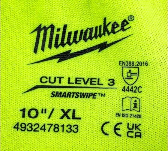 Перчатки защитные Milwaukee Hi-Vis Cut level 3/C XL/10 4932478133 (размер: 10(XL))