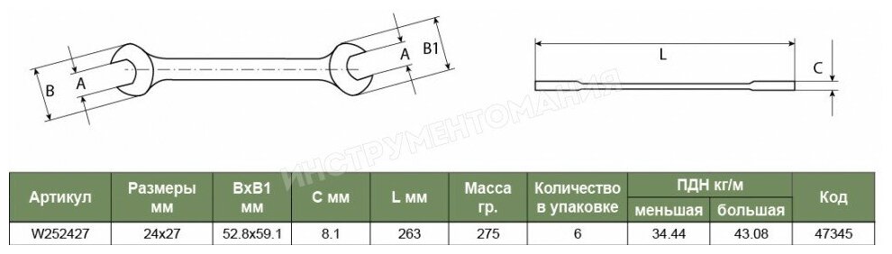 Сервис сравнения цен СкидкаГИД предлагает сравнить цены на товар «Ключ гаечный рожковый Jonnesway 24x27мм W252427»