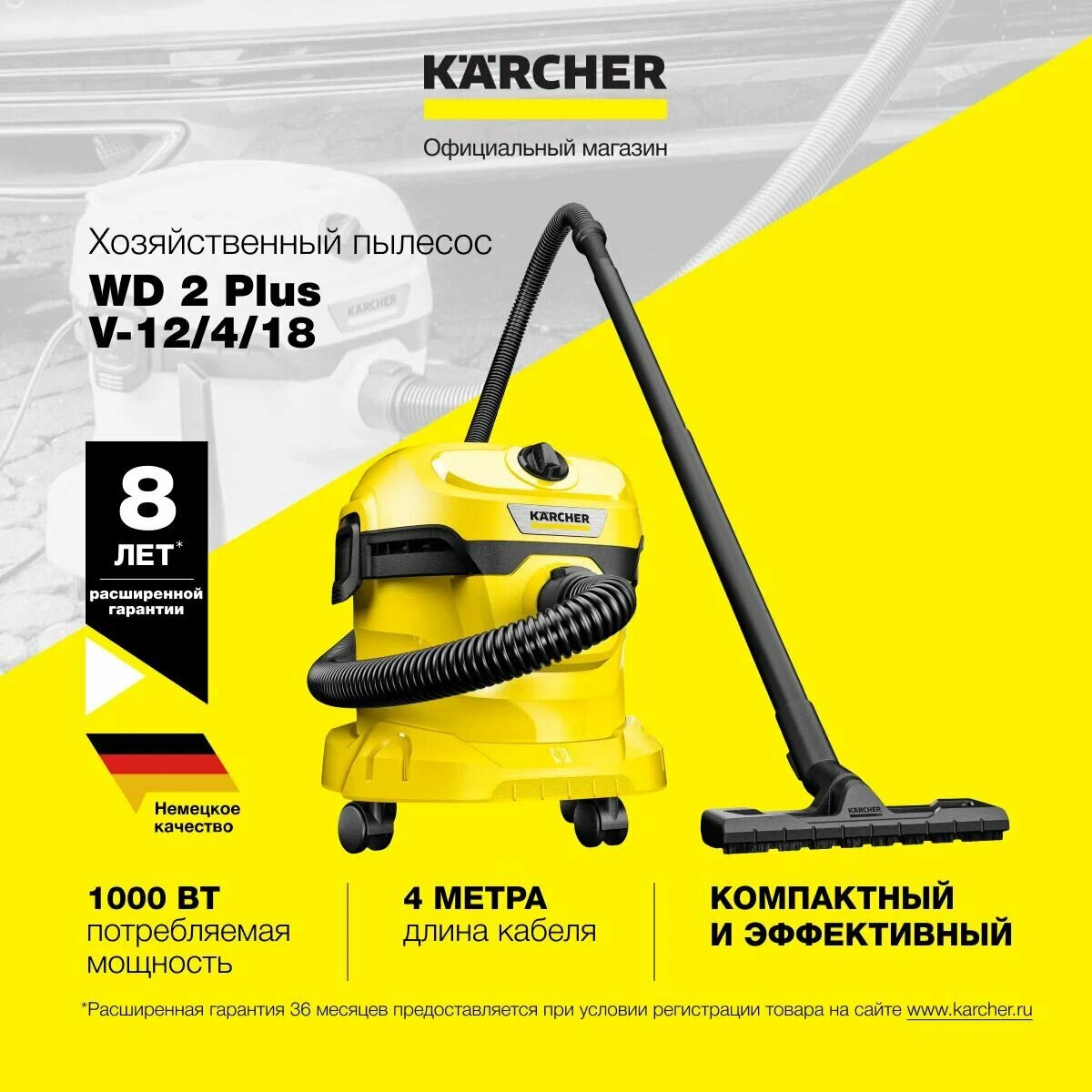 Сервис сравнения цен СкидкаГИД предлагает сравнить цены на товар «Пылесос Karcher WD 2 PLUS V-15/4/18 1.628-003.0»