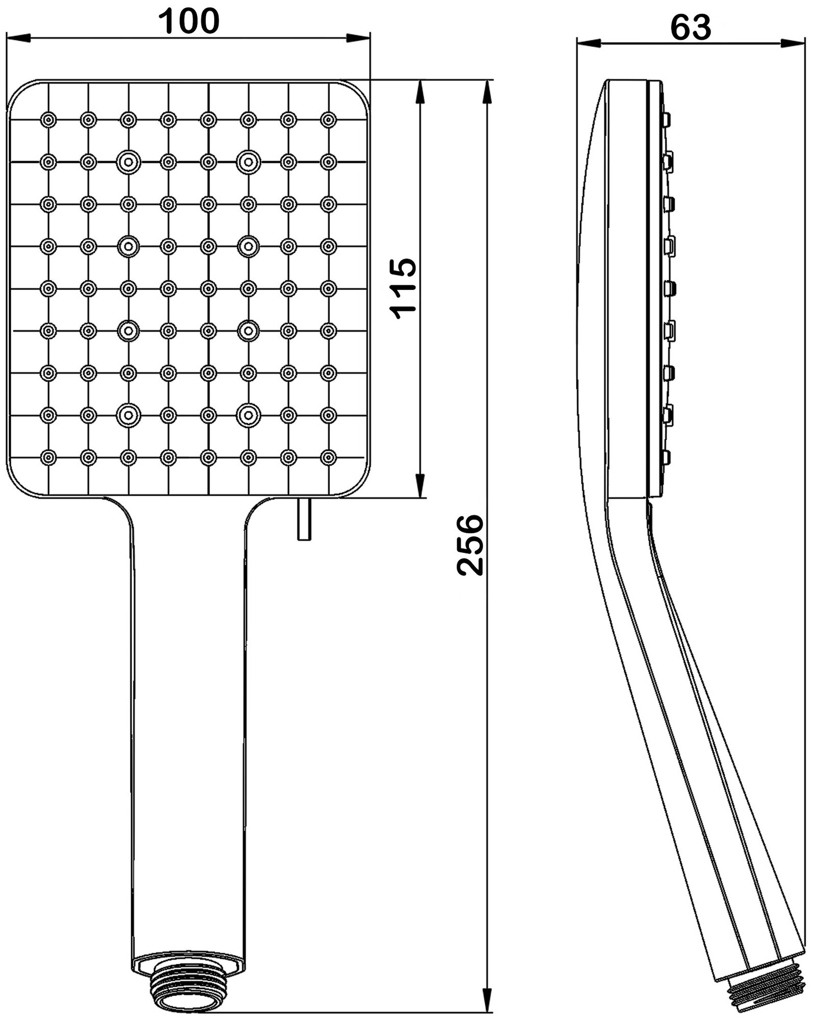 Ручной душ. 6 режимов. Размер - 100х115 мм. Гипоаллергенный ABS пластик. Форсунки из силикона с функцией самоочистки. Переключение режимов при помощи эргономично расположенного рычага.