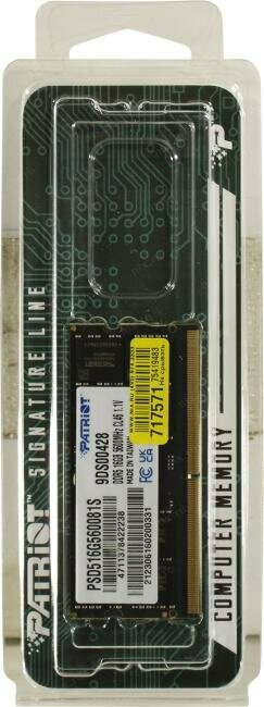Модуль памяти SODIMM DDR5 16GB Patriot Memory Signature Line PC5-44800 5600Mhz CL46 1.1V retail PSD516G560081S