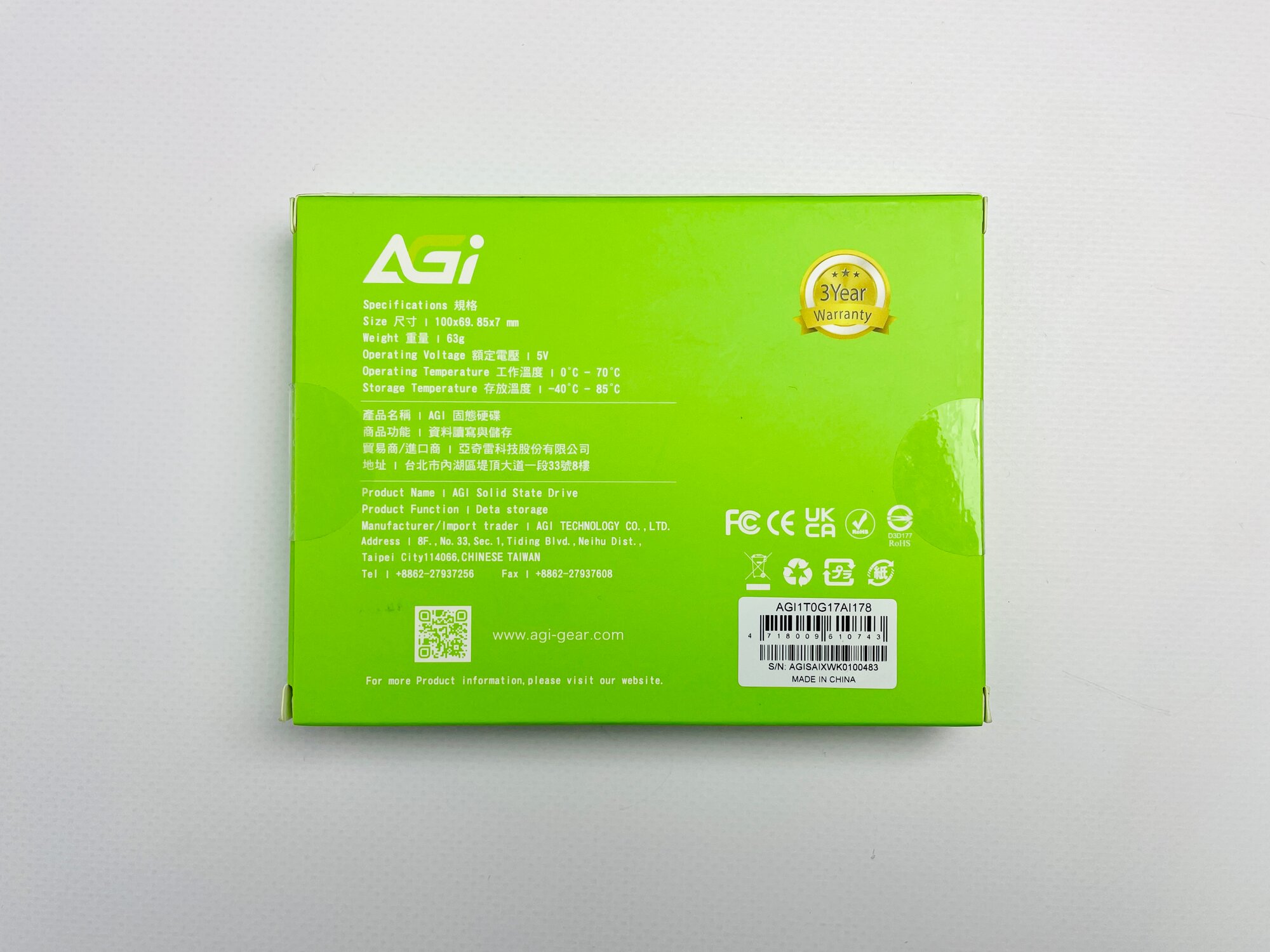 Накопитель SSD 2.5'' AGI AI178 1TB SATA 6Gb/s 3D TLC 529/467MB/s IOPS 32K/76K MTBF 1.6M 600TBW 0.55DWPD RTL AGI1T0G17AI178