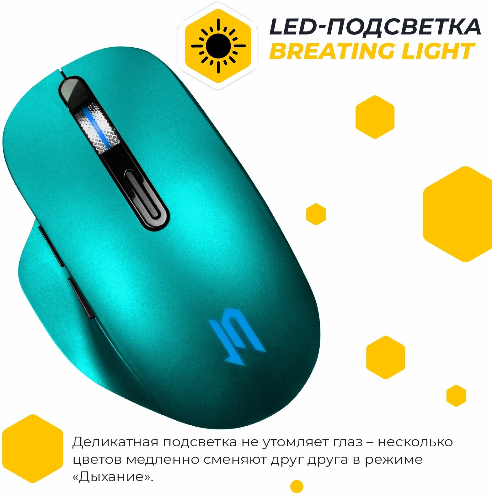 | Особенности | отсек для USB ресивера в корпусе, деликатное свечение логотипа и колеса прокрутки |