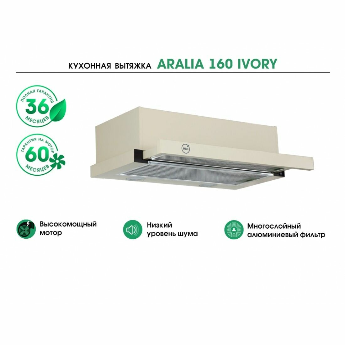Простая в управлении надежная встраиваемая кухонная вытяжка может работать как в режиме рециркуляции, так и в режиме воздухоотведения. Ее производительный, но нешумный мотор позаботится об очистке воздуха на вашей кухне от неприятных запахов, пока вы готовите вкусную и полезную еду для ваших близких. Универсальный внешний вид и компактные размеры модели позволят ей прекрасно смотреться на кухне любого стиля и размера. Видимая после встраивания часть вытяжки выполнена из металла белого цвета, а управляется вытяжка с помощью удобных кнопок. Вся кухонная техника бренда MBS соответствует всем современным европейским стандартам, а гарантия производителя составляет 3 года.