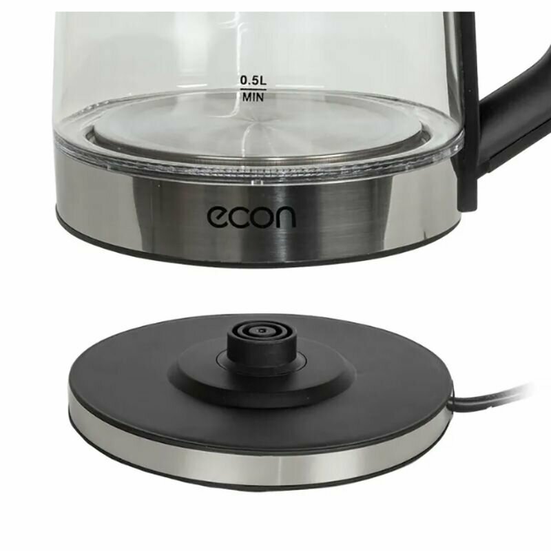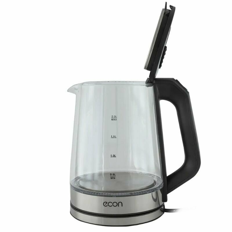 Стильный электрический чайник ECON ECO-2050KE из высококачественного пластика и боросиликатного стекла станет оригинальным украшением Вашей кухни и прекрасным подарком друзьям и родственникам.