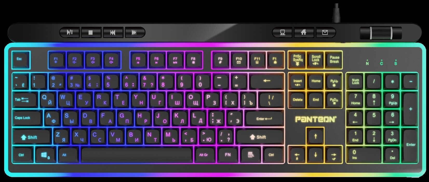 Зонированная led-подсветка RGB LIGHT Настройка подсветки управляется следующими сочетаниями клавиш: Fn + Print Screen - включение и отключение подсветки, Fn+Scroll Lock - переключение между 11 предустановленными режимами подсветки, Fn + Insert - переключение однотонных режимов свечения (6 цветов), Fn + 1.9 - переключение между 9 статическими и динамическими режимами подсветки (режимы дублируют те, которые переключаются сочетанием Fn+Scroll Lock), Fn + 9 - настраиваемый режим. Клавиатура разделена на 7 секторов, каждому из которых можно назначить один из 6 цветов. Выбор сектора осуществляется сочетаниями Fn+ ← или →, выбор цвета - Fn+ ↑ или ↓. Надежный мембранный механизм До 10 млн нажатий - ресурс клавиш, который гарантирует длительный срок службы устройства даже при ежедневном активном использовании. В работе мембранная структура обеспечивает мягкий и тихий клик. Регулируемый угол наклона Раскладные ножки на дне клавиатуры позволяют менять угол наклона и располагать клавиатуру в комфортном положении, снижая нагрузку на кисти и запястья. Антигостинг 26 клавиш Анти-гостинг 26 клавиш (Tab, Caps, X, F, Shift (левый), Ctrl (левый), G, ↑, ←, ↓, →, M, Alt (левый), T, D, S, W, Q, B, V, R, E, A, пробел, Z, C). Это открывает широкие игровые возможности — нажатие на каждую клавишу анализируется платой отдельно, что позволяет при управлении игровыми действиями одновременно нажимать большое количество клавиш, не опасаясь за их некорректную регистрацию или искажение последовательности нажатия. Игровой режим Fn+Win предотвращает случайное «сворачивание» окна во время активной игры. Fn+W активирует клавиши управления курсором (стрелки) в режим WASD.
