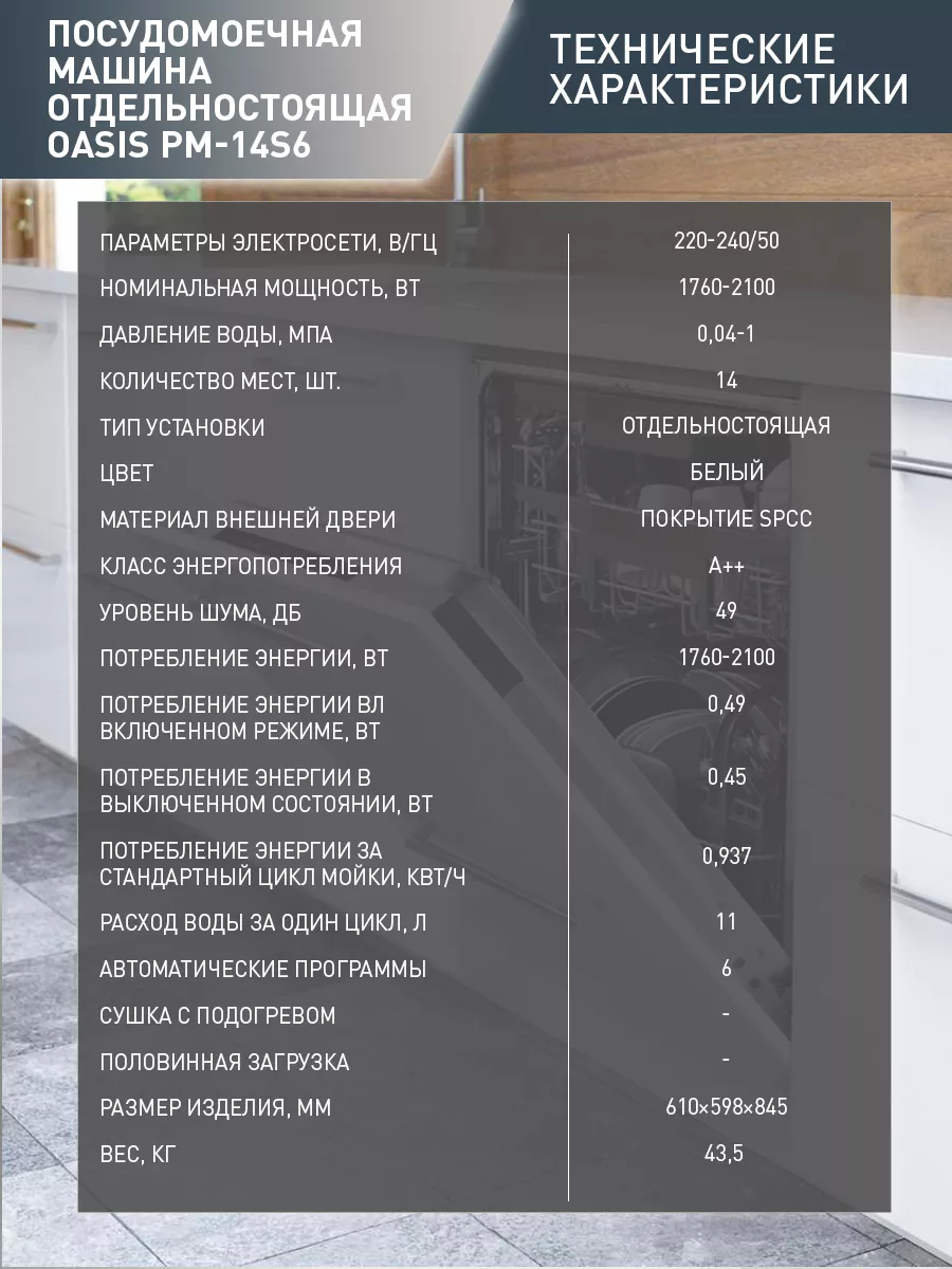 Посудомоечная машина Oasis PM-14S6 белый