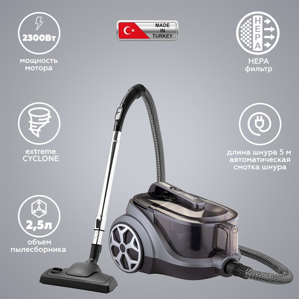 Пылесос с контейнером для пыли Kraft KF-KVC2306 серый
