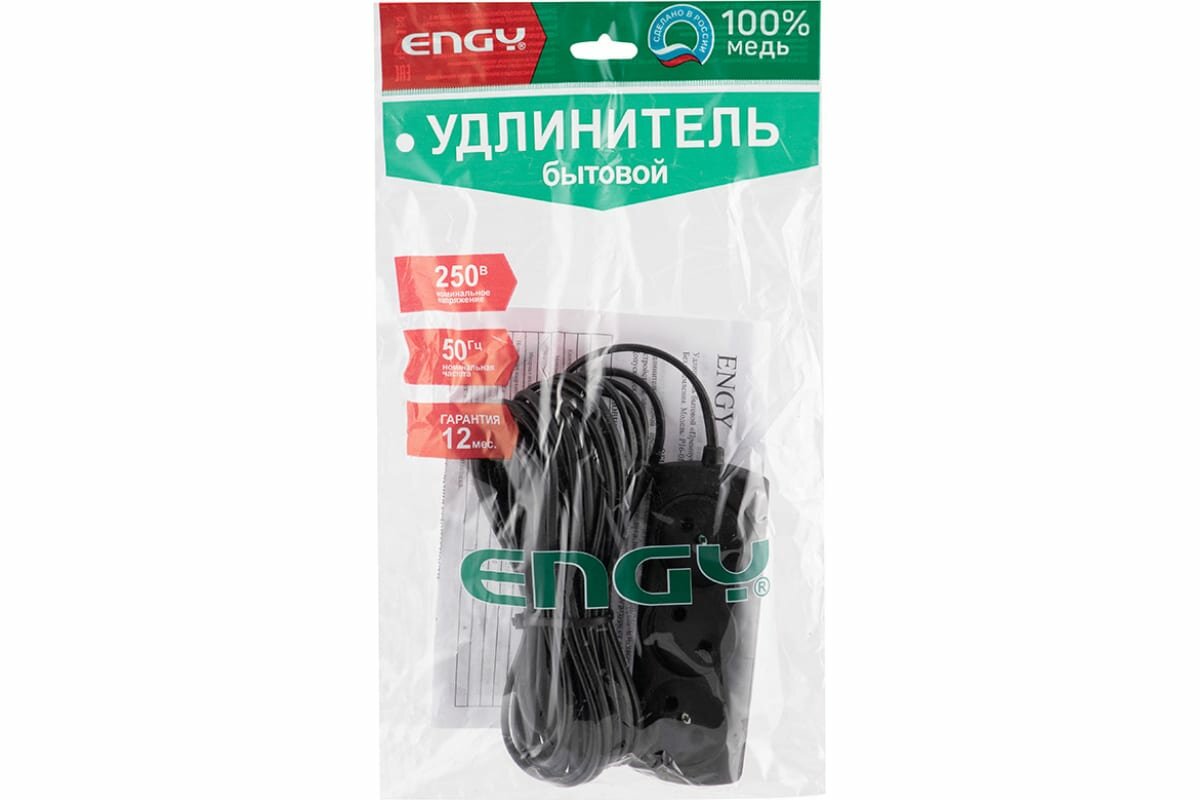 Сетевой удлинитель ENGY Эконом без з/м, 3р*10м (провод ШВВП 2х0,75) чёрный