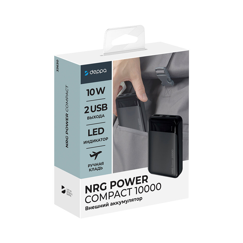 Внешний аккумулятор (Power bank) Deppa NRG Power 10000 mAh чёрный
