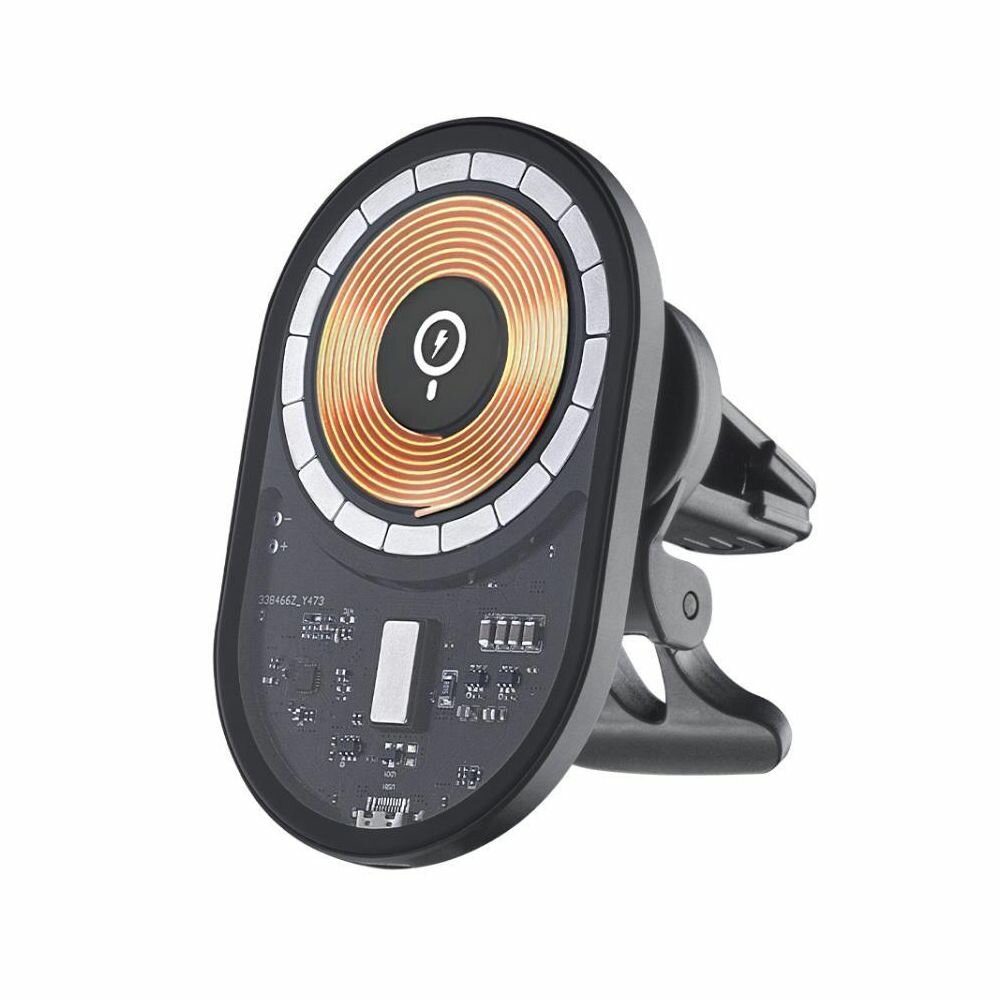 Мощность Qi-зарядки — 15 Вт. Крепление к вентиляционной решетке с упором: будет идеально держаться почти на любом воздуховоде. Мощные магниты, аналогичные оригинальным MagSafe: подойдет для любой версии iPhone 12 и новее. Отлично выглядит и качественно собран: достоин быть лучшим аксессуаром для iPhone. Автомобильный держатель Mage Safe Crystal Крепление MagSafe для iPhone Быстрая беспроводная зарядка Крепление на вентиляционную решетку с упором Настраиваемый угол наклона смартфона Возможность поворота на 360 градусов Входной ток: DC 9В/2A, 5В/2.4A Выходная мощность: 15 Вт / 10 Вт / 7.5 Вт / 5 Вт Допустимая толщина чехла: до 4 мм Размеры поверхности: 63*100 мм Встроенная защита: от перегрева, короткого замыкания, превышения допустимого напряжения, перезаряда Вес: 75г.