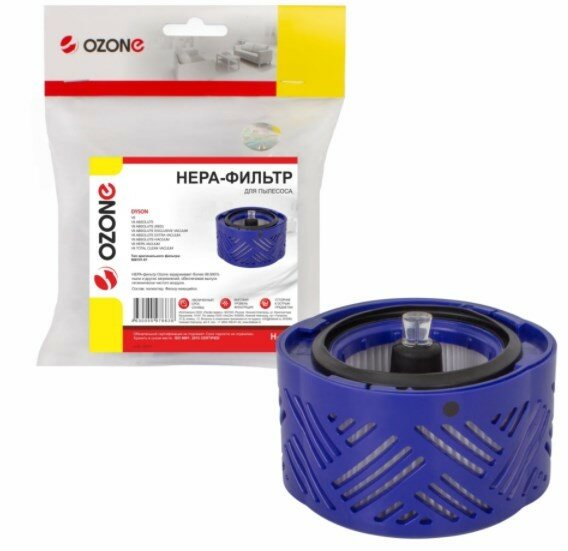 Ozone HEPA-Фильтр - это высококачественный синтетический фильтр для пылесоса, который обеспечит вашему пылесосу эффективную очистку воздуха и значительно уменьшит попадание пыли, аллергенов и других загрязнений в воздух. Фильтр изготовлен из полиэстера и рассчитан на многократное использование. Он моется и обеспечивает повышенный уровень фильтрации, сохраняя чистоту воздуха.Предназначен для моделей: DYSON V6 DYSON V6 ABSOLUTE DYSON V6 ABSOLUTE (RED) DYSON V6 ABSOLUTE EXCLUSIVE VACUUM DYSON V6 ABSOLUTE EXTRA VACUUM DYSON V6 ABSOLUTE+VACUUM DYSON V6 HEPA VACUUM DYSON V6 TOTAL CLEAN VACUUMФильтр высокоэффективной очистки обладает высокой механической прочностью и устойчивостью к острым предметам, благодаря чему он может выдерживать интенсивное использование без повреждений. Он обеспечивает надежную защиту двигателя пылесоса от пыли и мусора, продлевая срок его службы в два раза.Преимущества от Ozone:- Высокая эффективность очистки воздуха- Многократное использование- Моющийся фильтр- Антиаллергенные свойства- Увеличенный срок службы- Подходит для пылесосов DysonСпособ применения:1. Снимите старый фильтр и промойте его в теплой воде с мягким моющим средством.2. Дайте фильтру полностью высохнуть перед установкой на пылесос.3. Установите фильтр обратно на пылесос и убедитесь, что он плотно прилегает к корпусу.4. При необходимости замените фильтр на новый. фильтр от Ozone - это надежный и эффективный аксессуар для вашего пылесоса, который поможет вам поддерживать чистоту воздуха в вашем доме и защитить ваш пылесос от пыли и аллергенов.
