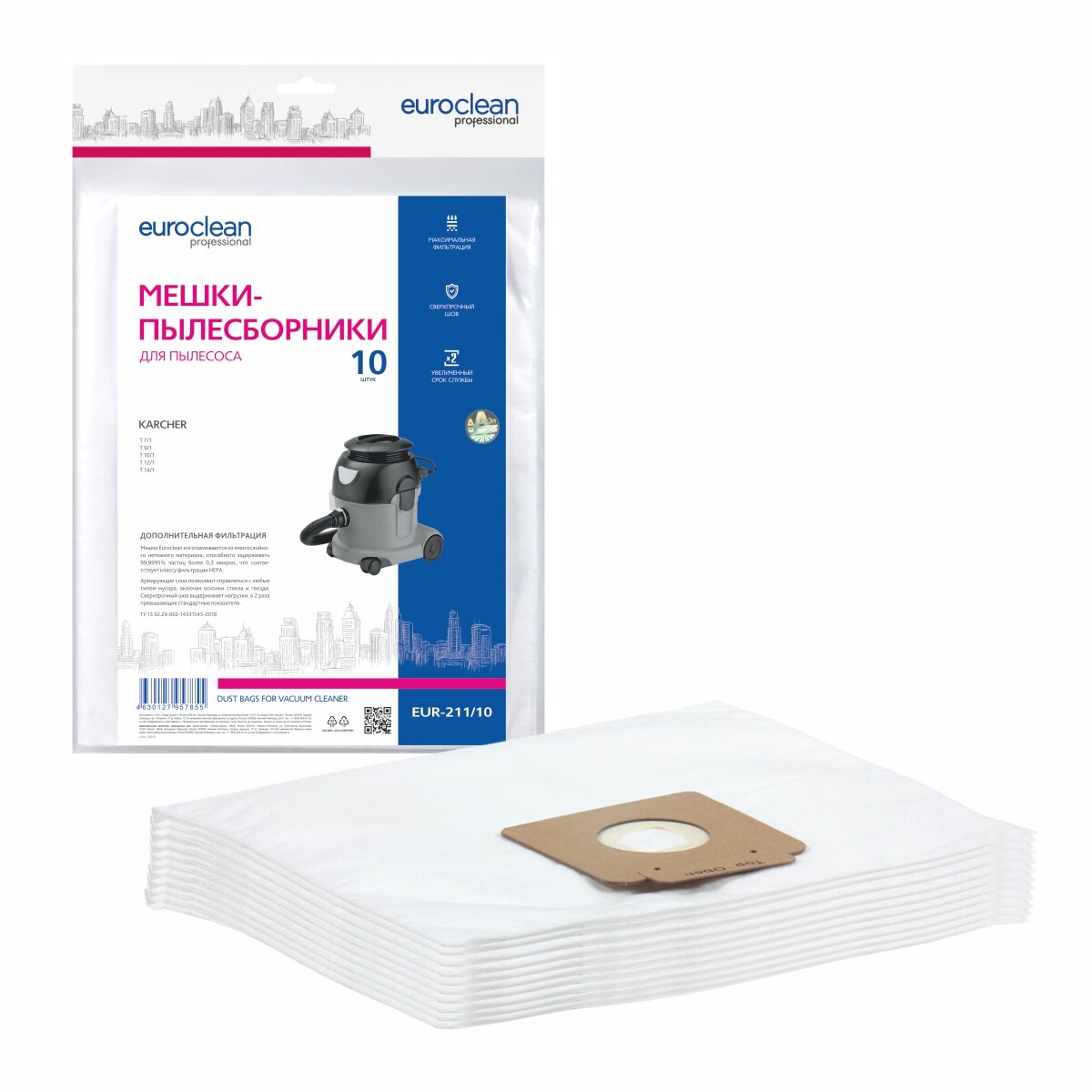 Фильтр-мешки Euroclean синтетические для пылесоса 10 шт для KARCHER. Фильтр-мешки Euroclean синтетические для пылесоса 10 шт для KARCHER .
