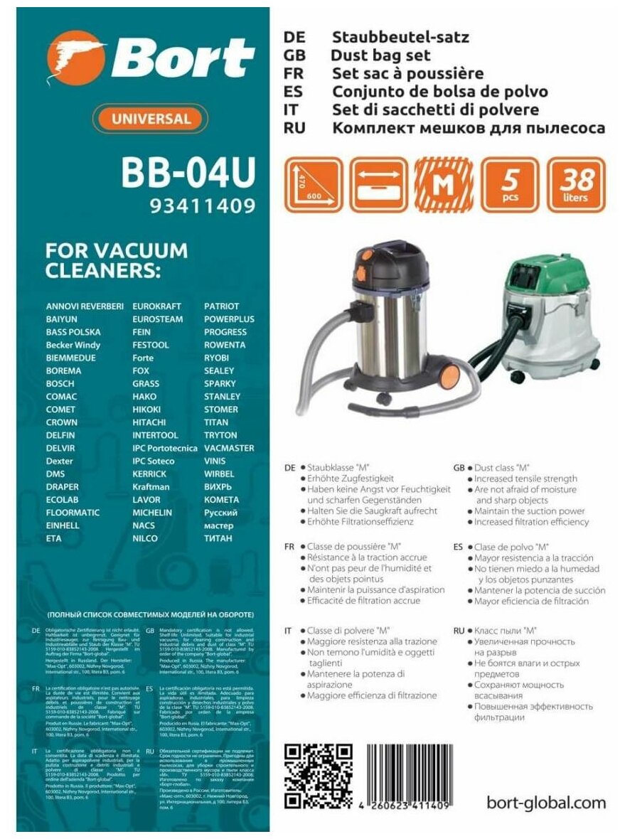 Комплект мешков пылесборных для пылесоса Bort 93411409