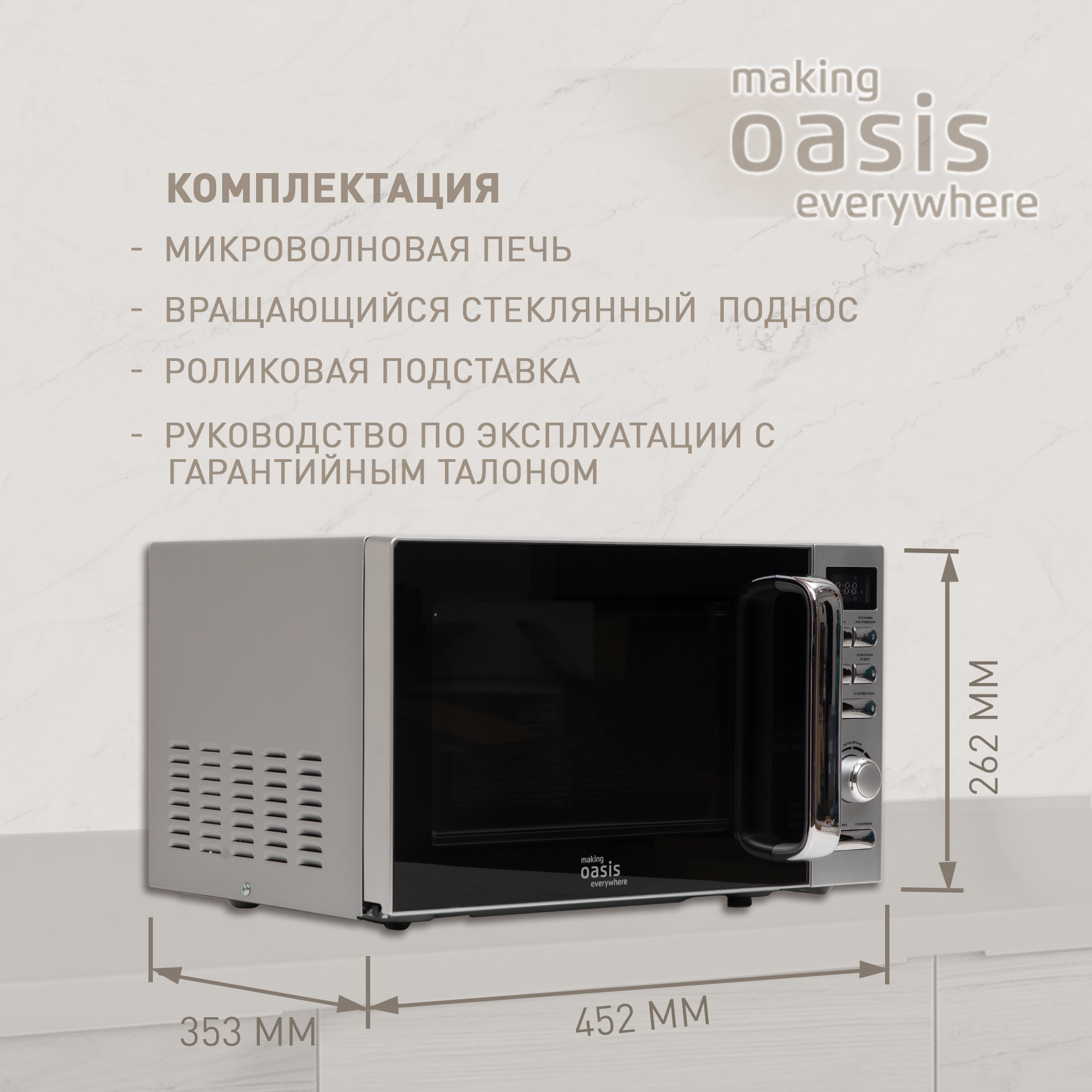 Микроволновая печь свч making oasis everywhere MW-80EB - это отличный выбор для тех, кто ищет надежную и удобную в использовании микроволновую печь. Она имеет объем 20 л и оснащена электронной панелью управления, которая позволяет быстро и легко настроить нужную мощность и время приготовления.Одним из главных преимуществ этой микроволновой печи является наличие дисплея, на котором отображается информация о текущем времени, уровне мощности и оставшемся времени до завершения программы. Это делает процесс использования более удобным и понятным.Кроме того, микроволновая печь making oasis everywhere MW-80EB имеет несколько режимов работы, включая разморозку. Она также оснащена функцией автоматического приготовления, которая позволяет выбрать один из 8 рецептов и настроить нужное время и мощность.Микроволновка свч печь making oasis everywhere MW-80EB также имеет откидную дверцу и открывающуюся кнопку, что делает ее удобной в использовании. Она работает на мощности 1200 Вт и имеет 6 уровней мощности.В целом, микроволновка making oasis everywhere MW-80EB является отличным выбором для тех, кто ценит удобство и надежность в использовании. Ее электронная панель управления, функция автоматического приготовления и откидная дверца делают ее идеальным выбором для любого дома.