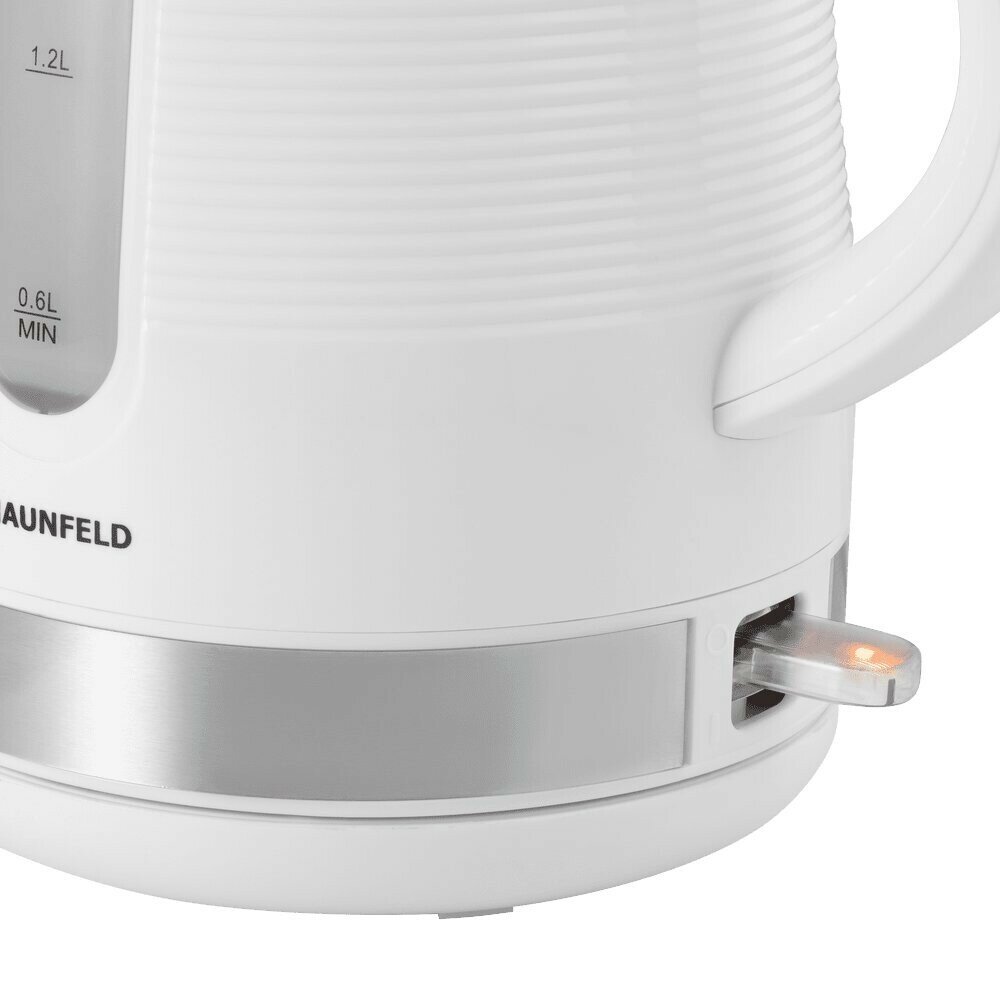 **Электрический чайник Maunfeld ** — модель со спиралевидным нагревательным элементом, обладающая емкостью, оптимальной для семьи из нескольких человек. Корпус изготовлен из легкого, но прочного и жизнестойкого пластика. Предусмотрена мерная шкала, благодаря которой можно своевременно узнать о необходимости долить воды. Крышка с блокировкой обеспечивает необходимую герметичность. Установлена индикация работы и уровня воды. Система автоматического выключения позволит избежать преждевременного выхода чайника из строя. Широкое горлышко упрощает процесс очистки внутренних стенок чайника. Кнопка включения и выключения находится в нижней части корпуса.