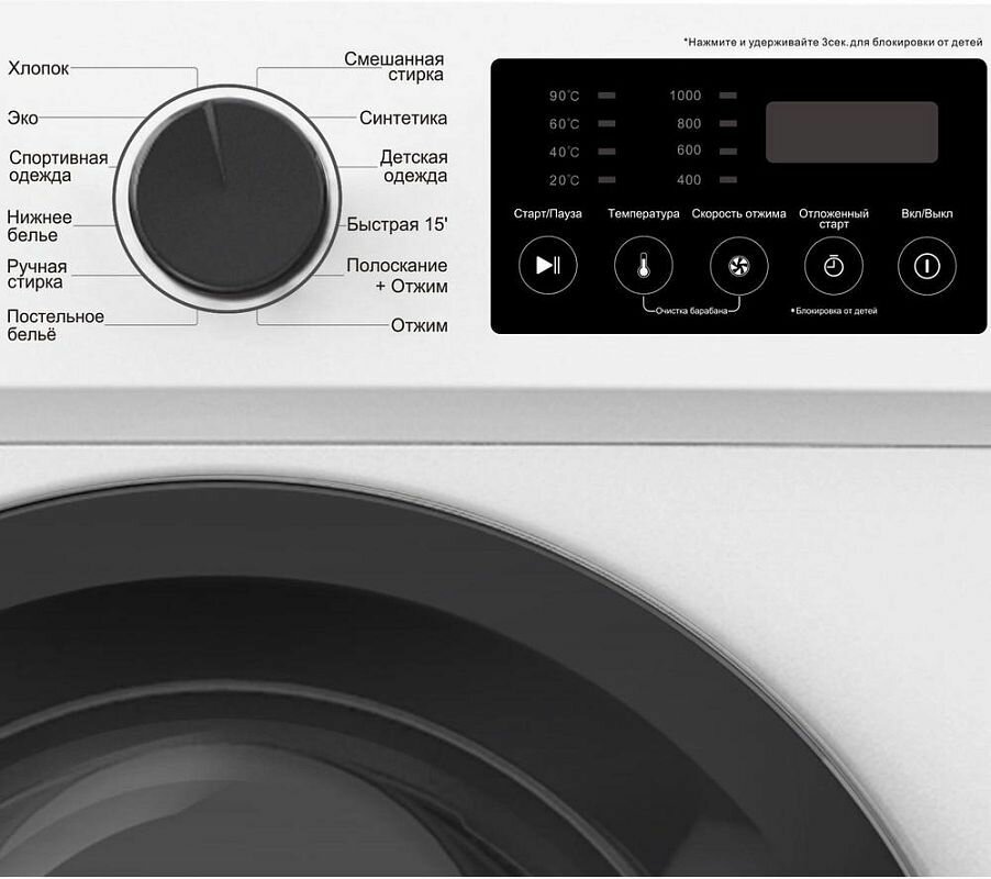 | Специальные программы | Хлопок, Экономичная, Спорт, Нижнее белье, Шерсть/ручная стирка, Перина, Смешанные вещи, Синтетика, Детские вещи, Ускоренная 15 минут, Полоскание + отжим, Отжим, Пар |
