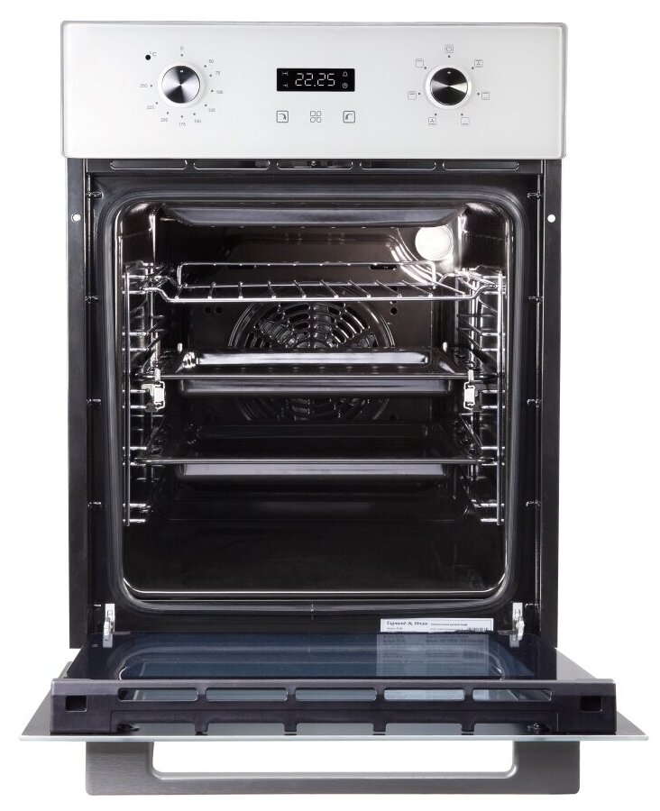 Духовой шкаф отличается лаконичным дизайном, понятным управлением и компактными размерами. При ширине всего 45 см он отлично впишется в габариты небольшой городской кухни. А емкая духовка с объемом 50 л позволит готовить блюда на большую семью с детьми. При разработке дизайна духовки специалисты решили обеспечить покупателю максимальную безопасность.Для этого духовой шкаф оснастили:· Утапливаемыми ручками управления — их можно спрятать в духовой шкаф, что делает проще уборку и заботится о безопасности и эстетике кухонного пространства;· тройным стеклом дверцы и холодным фронтом — при максимальной прозрачности защита убережет хозяйку от ожогов;· ускоренным разогревом — рабочая температура достигается в течение 3 минут;телескопическими направляющими — для бесшумного и беспрепятственного скольжения противней.· Тангециальное охлаждение гарантирует безопасное использование – высокая температура не навредит работе духового шкафа и кухонному гарнитуру.