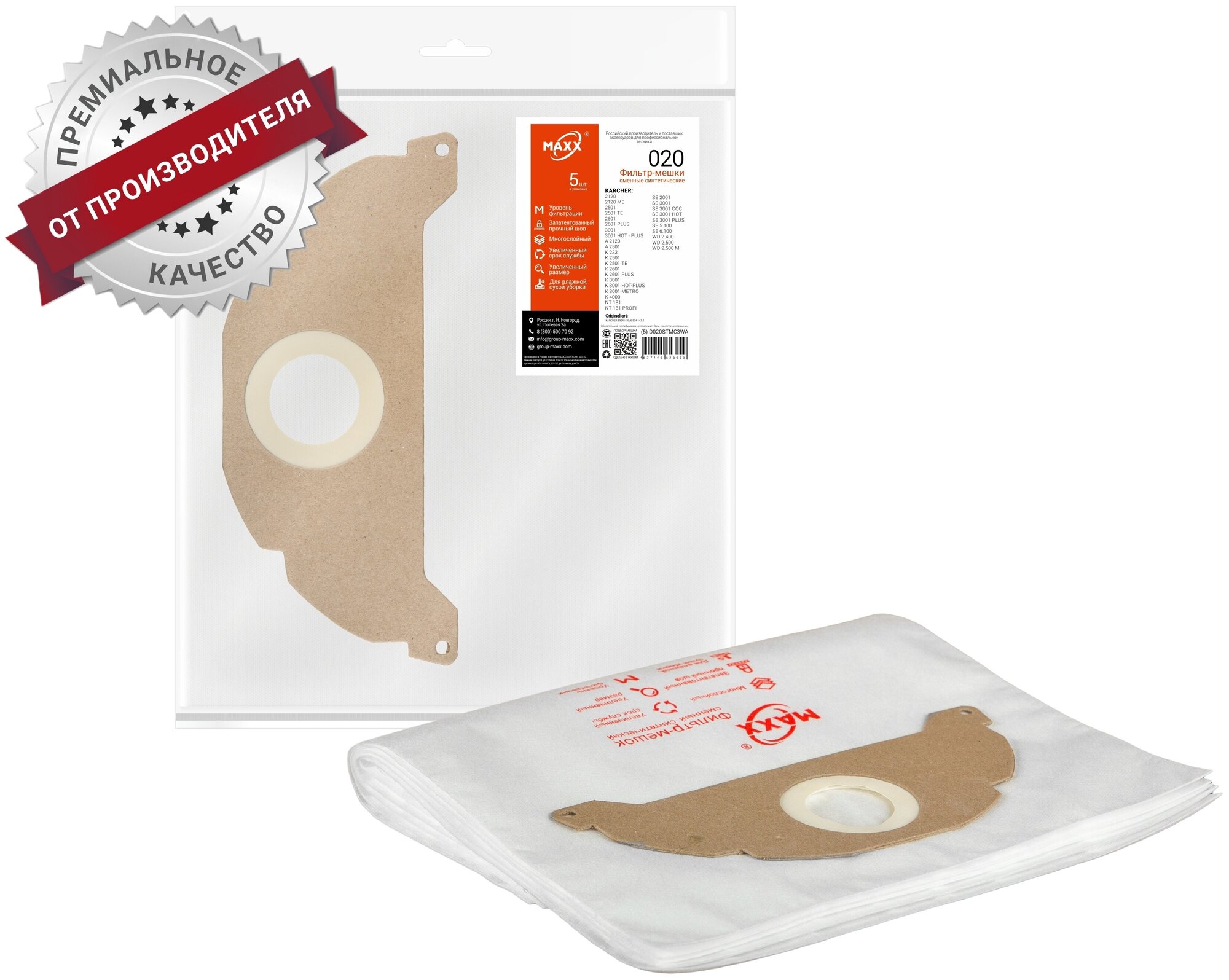 Karcher 6.904-143 2-слойные бумажные фильтр-мешки с прочной поверхностью позволяют гигиенично и комфортно утилизировать собранный моющим пылесосом мусор. Мешки характеризуются высокой прочностью и устойчивостью к разрывам. Они хорошо удерживают собранную пыль, предохраняя внутренние механизмы от засорения. После использования мешки легко утилизируется, не загрязняя окружающую среду. Данная модель подходит к аппаратам серии SE.
