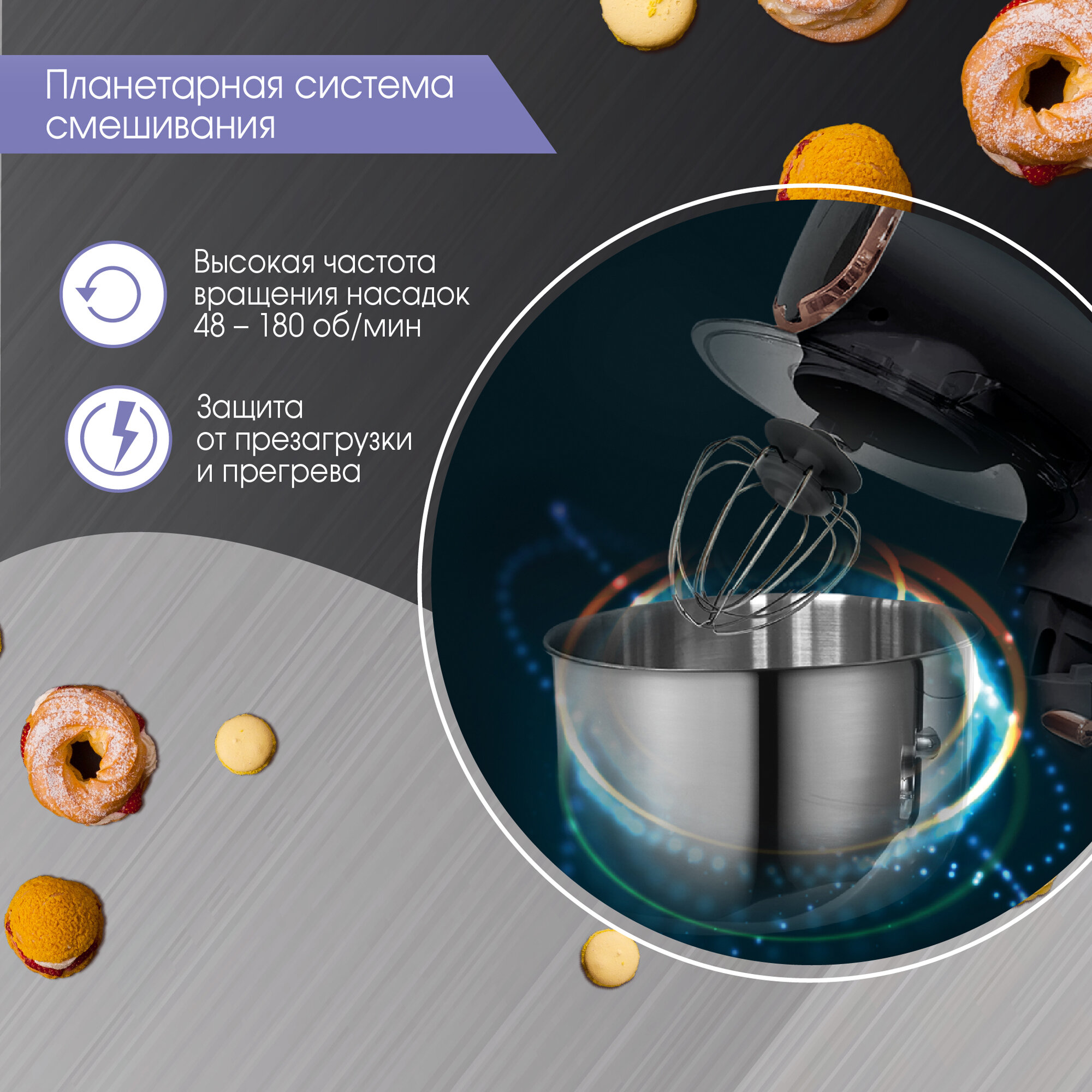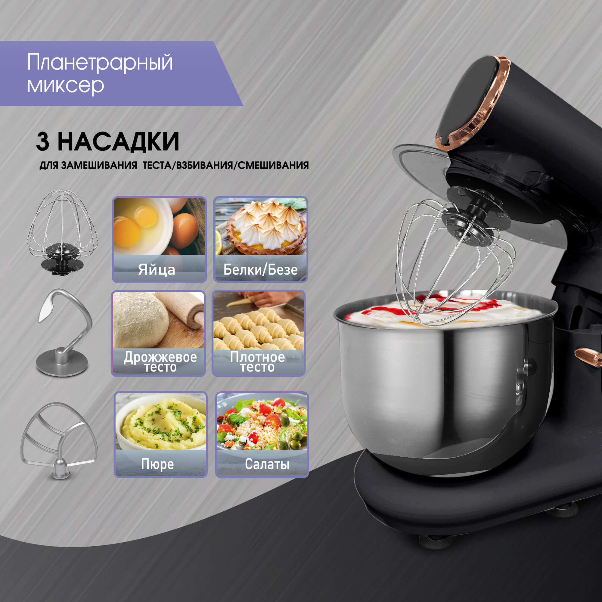 | Насадки | венчик для взбивания, лопатка для перемешивания, крюк для теста |