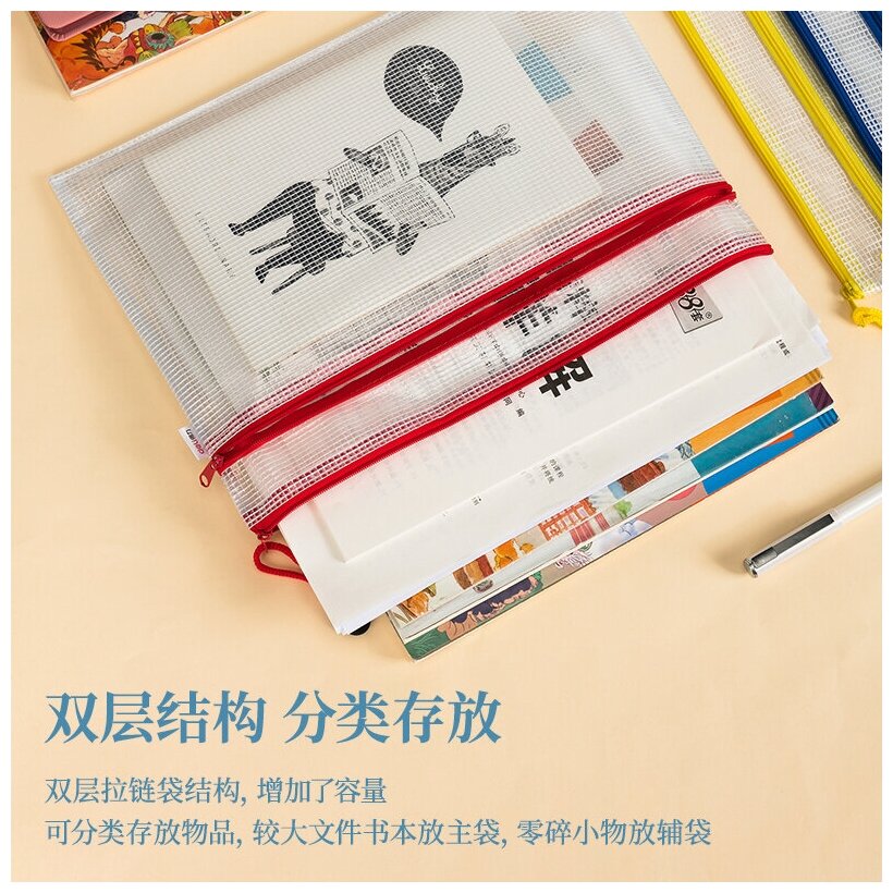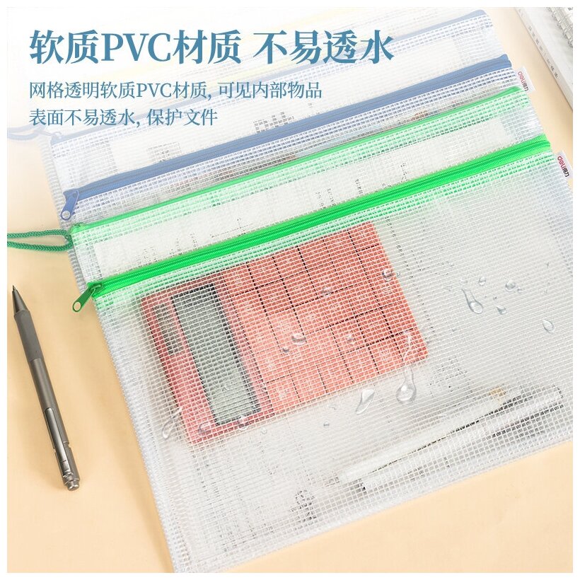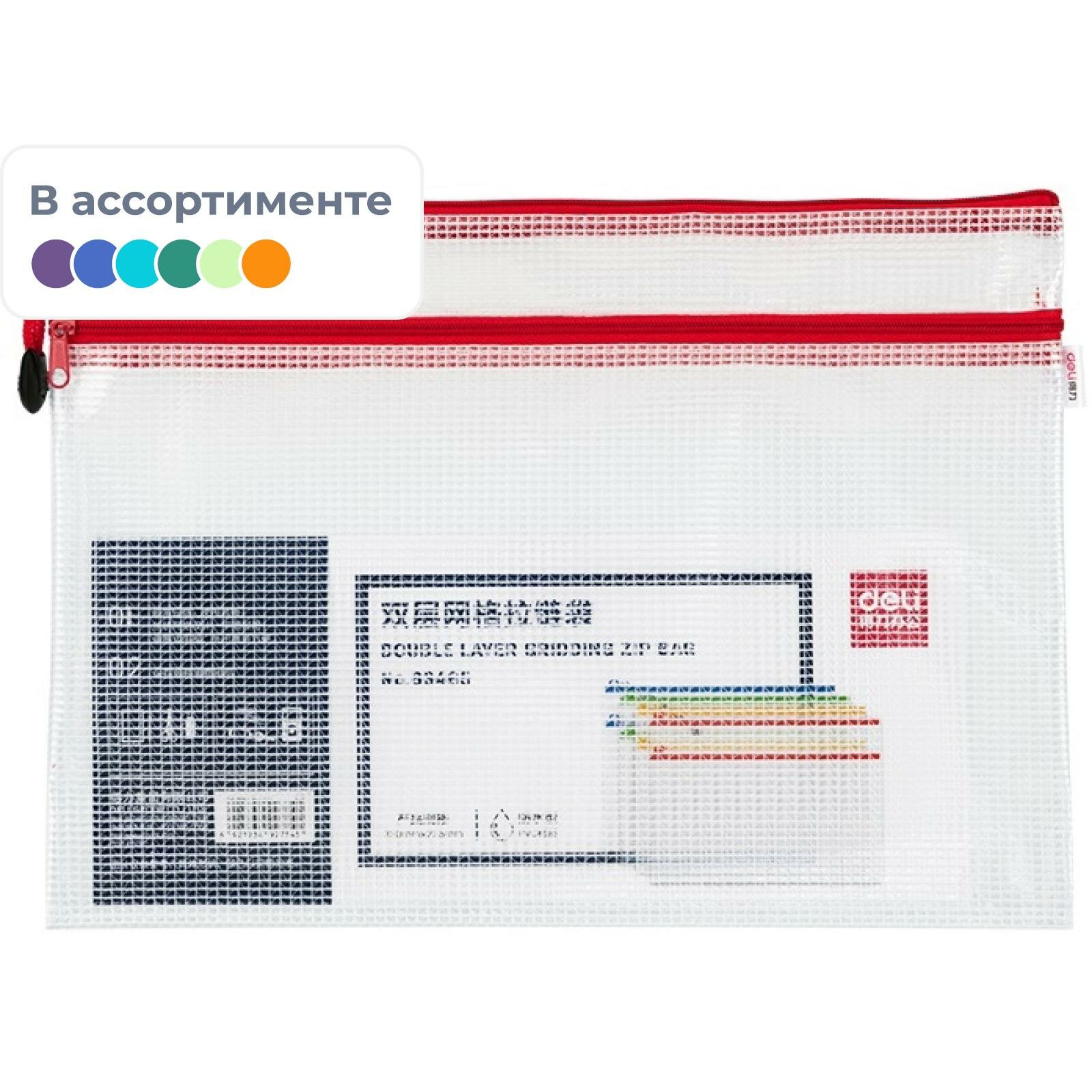 Горизонтальная папка-конверт на молнии Deli формата А4. Отлично сочетает в себе современный стиль и практичность. Прозрачная папка-конверт изготовлена из прозрачного поливинилхлорида с текстурой сетка 0.23 мм. Два внутренних кармана закрываются на молнии, надежно защищают документы от загрязнений и деформации. Удобна для транспортировки мелких вещей и аксессуаров. Вмещает до 100 листов стандартной плотности. Отличное и портативное решение для хранения документов для школьников и студентов.