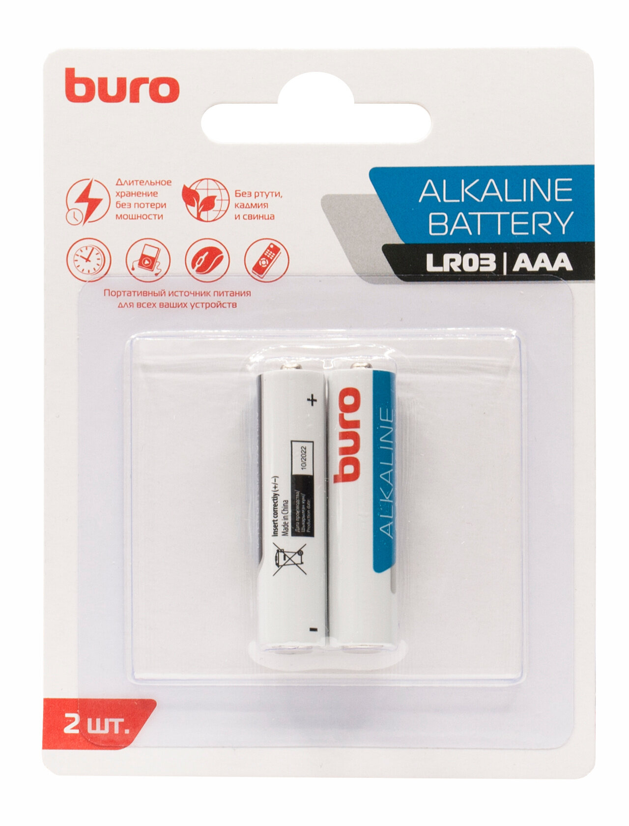 Buro Alkaline LR03 AAA – две мизинчиковые алкалиновые батарейки в компактной блистерной упаковке. Их удобно брать с собой в любые поездки, походы и путешествия. Элементы питания с номинальным напряжением 1,5 вольт рекомендуются для использования в mp3-плеерах, диктофонах, карманных фонариках, электронных будильниках, компьютерных мышах, пультах ДУ. В батарейках применяется щелочной электролит. Он хорошо сохраняет заряд даже при низкой температуре и позволяет выдавать предельную мощность в любое время года. Модель отличается безопасностью при повседневной эксплуатации: в составе нет вредных веществ – ртути, кадмия и свинца. Срок хранения батареек без потери емкости составляет примерно 7 лет, поэтому они могут быть запасным источником энергии на любой случай.