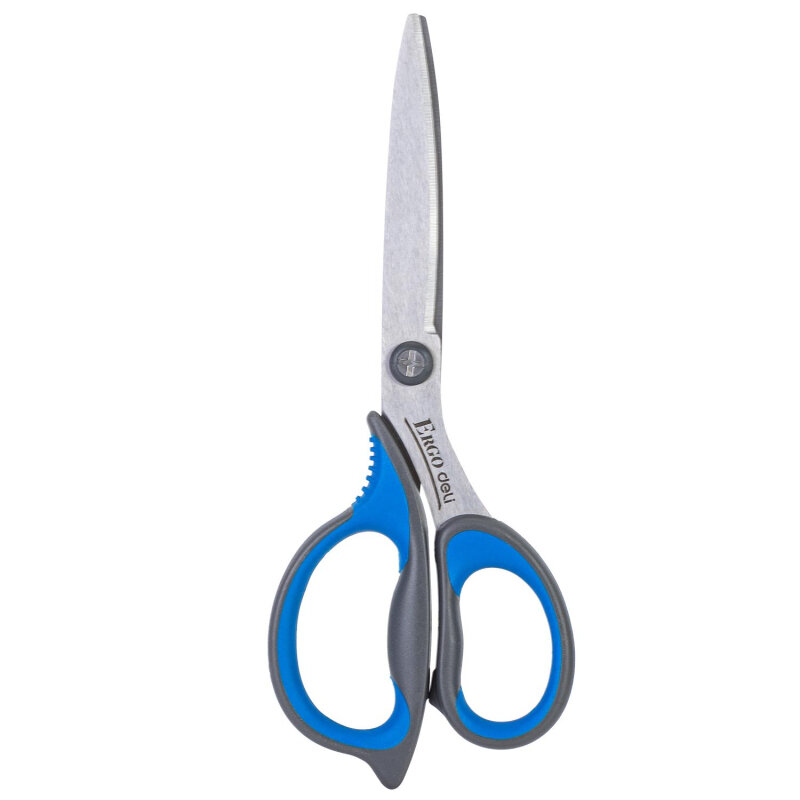 Ножницы Deli Soft - удобный и точный инструмент для легкого разрезания бумаги, картона, ткани и других видов материалов. Ножницы изготовлены из ТРЕ (прорезиненного) материала, что делает их использование более приятным и удобным. Отполированные и остроконечные лезвия из нержавеющей стали и надежная заклепка гарантируют высокое качество и долгий срок службы. Остроконечные лезвия с двухсторонней заточкой остаются максимально острыми даже при интенсивной и длительной эксплуатации. Отличный современный дизайн подойдет взрослым и детям старшего школьного возраста. Длина ножниц: 170мм.