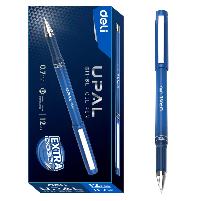 Гелевая ручка Deli Upal с корпусом из пластика имеет металлический наконечник и металлический клип. Чернила синего цвета, толщина линии - 0,35 мм. Чернила быстро высыхают, не размазываются. Ручка обеспечивает легкое и мягкое письмо, яркие и насыщенные линии.