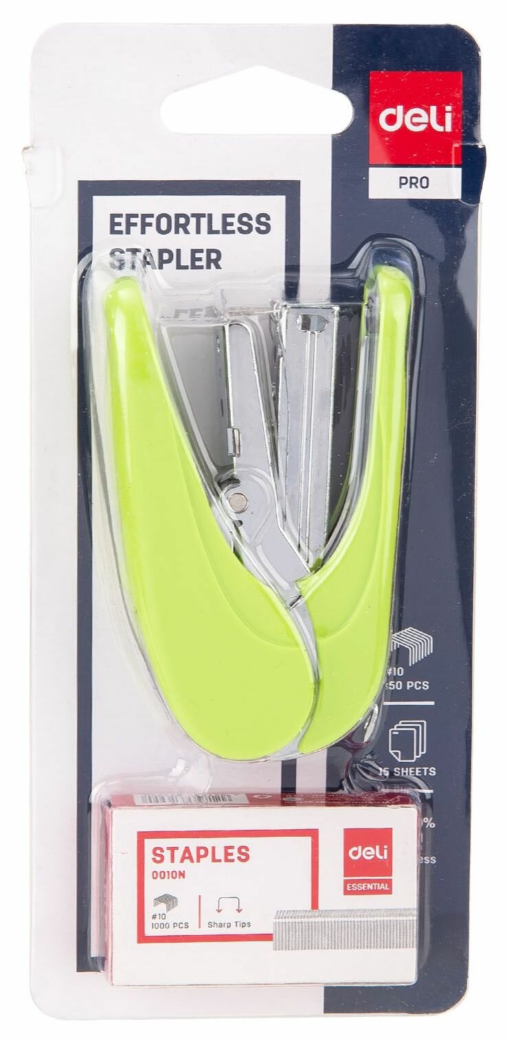 Комплект степлер и скобы Deli N10 одновременно скрепляемые листы 10 шт, снижение усилия разноцветный 50 скоб, коробка 12 шт.Благодаря эргономичной форме степлер удобно лежит в руке.Не скользит, что позволяет легко зафиксировать его положение.За счет высокой прочности набор прослужит долго.Степлер ручной Deli N10. Одновременно сшивает до 10 листовЕмкость загрузки скоб: 50 шт.Необычный яркий дизайн обязательно найдет своего обладателя!