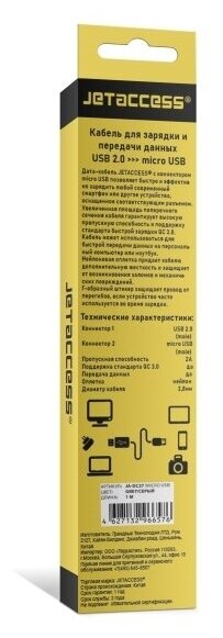 Кабель Jet.A JA-DC27 micro 1м. - для быстрой зарядки и безопасной передачи сигнала!