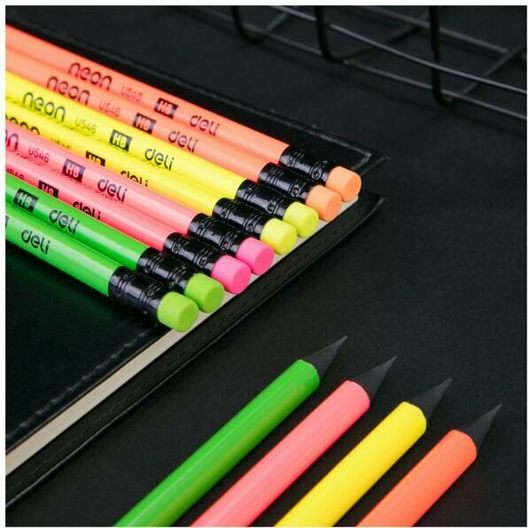 Карандаш насыщенный чернографитный Deli Neon HB с ластиком и заточенным грифелем. Штрихи мягко ложатся на бумагу. Легко затачивается и не ломается. Ластик без ПВХ, нетоксичен, окрашен в тон корпуса и безопасен для детей. Будет радовать вас яркой оболочкой.