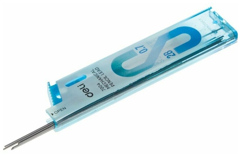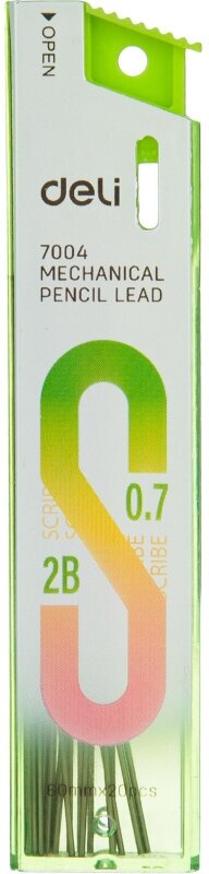 Сменный стержень микрографический Deli Scribe используется в механических карандашах. Грифели подходят для письма, точного рисования и черчения. Одной из главных характеристик является возможность рисовать тонкой линией. Штрихи мягко ложатся на бумагу. В одном удобном пластиковом футляре 20 грифелей толщиной 0,7 мм. Длина 1 стержня 60 мм. Твердость каждого - 2В. Товар поставляется в нескольких вариантах цвета/дизайна (без возможности выбора).